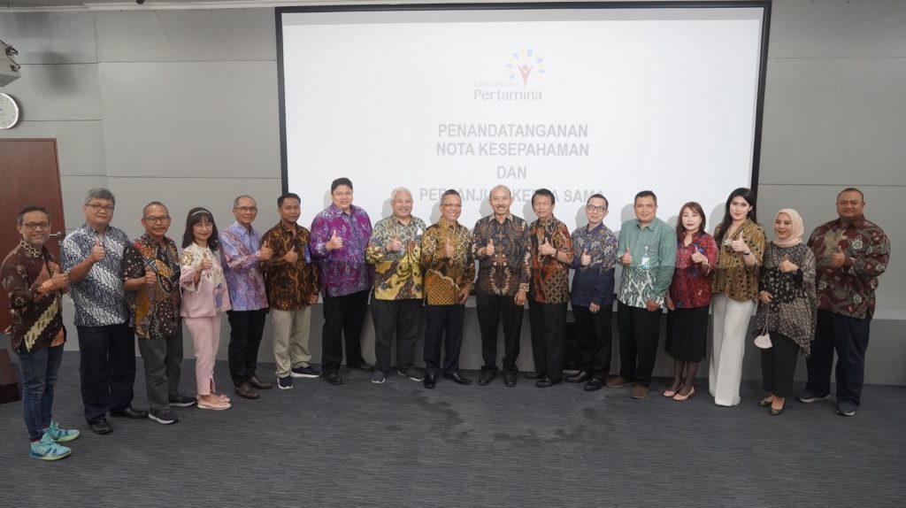 Dokumentasi: Foto bersama jajaran pimpinan Universitas Pertamina dengan pimpinan mitra UPER dalam acara penandatanganan nota kesepahaman dan kerja sama pada 01 Februari 2023.