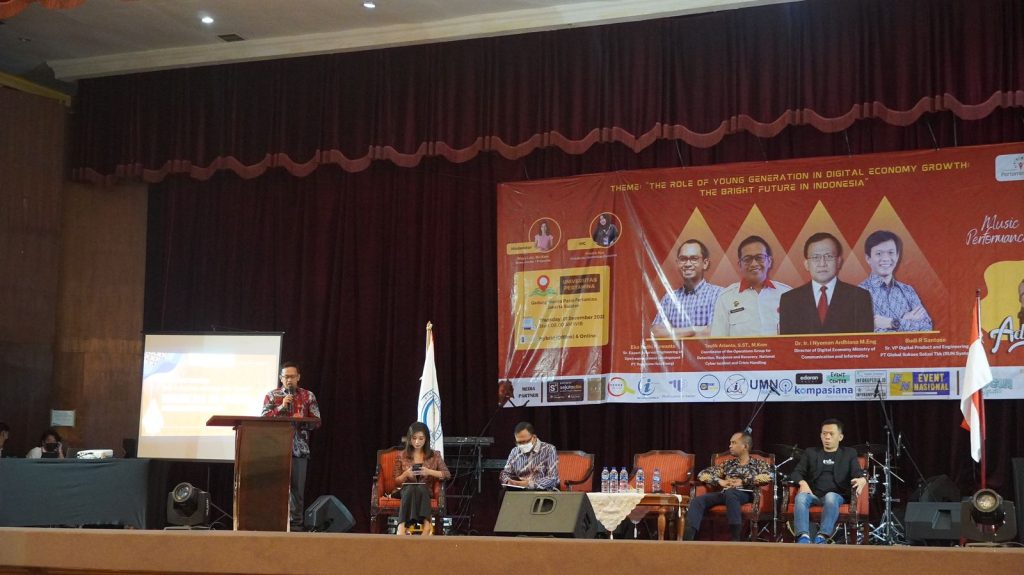 Turut hadir dalam kegiatan tersebut, Dr. Ir. I Nyoman Ardhiana, M. Eng., Direktur Ekonomi Digital Kementerian Komunikasi dan Informasi. Ia mengungkapkan bahwa pada tahun 2030 saat mengalami bonus demografi, Indonesia akan sampai pada peningkatan digitalisasi yang signifikan.