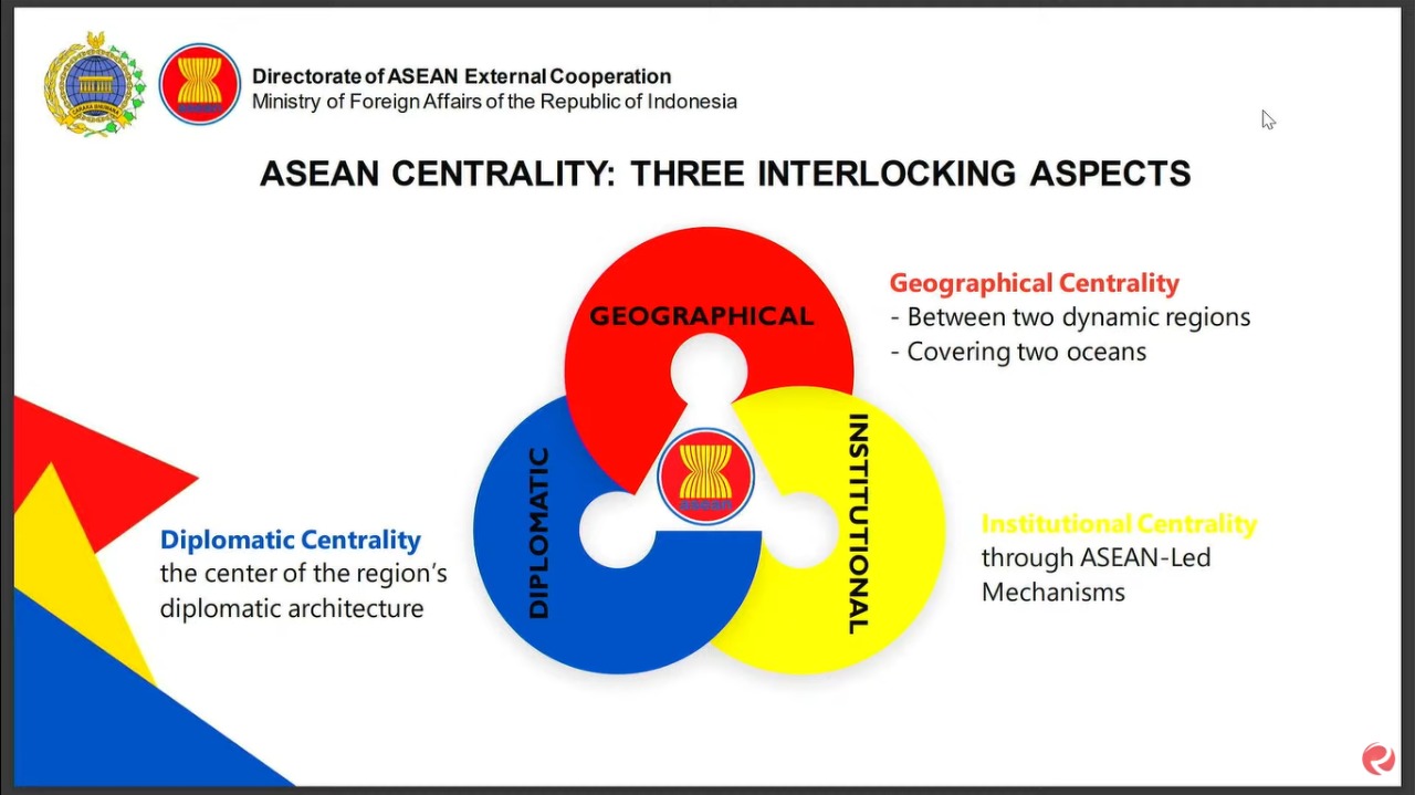 Dokumentasi: Pemaparan materi ASEAN-Korea Cooperation for Indo-Pacific Prosperity oleh Faizal Chery Sidharta, Direktur Kerja Sama Eksternal ASEAN pada kegiatan International Webinar Korea-ASEAN Solidarity Initiatives di Universitas Pertamina, Selasa (20/12). DelikAsia.com, (Universitas Pertamina),–Menyadur dari laman resmi ASEAN, Korea Selatan menjadi mitra internasional penting ASEAN sejak tahun 1989. Pada tahun 2015, ASEAN dan Korea Selatan menandatangani perjanjian ASEAN-Korea Free Trade Area yang mempermudah transaksi perdagangan antara ASEAN dengan Korea Selatan. Dampaknya, hingga tahun 2020 Korea Selatan menjadi mitra ekonomi terbesar ke empat ASEAN dengan total perdagangan dua arah mencapai 154,2 miliar USD.