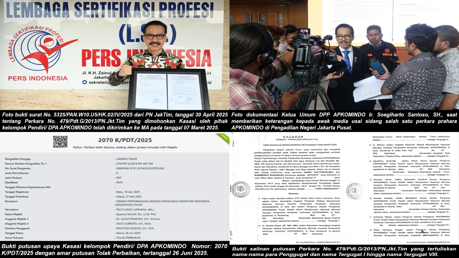 12 Tahun Prahara Rekayasa Hukum Kelompok Pendiri APKOMINDO Kandas di MA RI