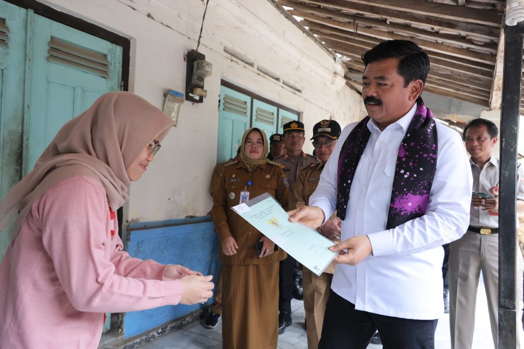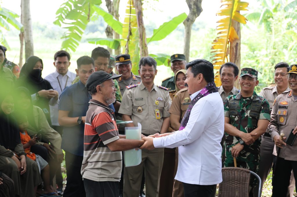 Menteri Agraria dan Tata Ruang/Kepala Badan Pertanahan Nasional (ATR/BPN), Hadi Tjahjanto , Saat di Desa Bengle, Kecamatan Talang, Kabupaten Tegal pada Senin (15/01/2024), menyerahkan secara door to door Sertipikat pada masyarakat dari program Pendaftaran Tanah Sistematis Lengkap (PTSL). DelikAsia.com, (Kabupaten Tegal) | Sejumlah 34 sertipikat tanah diserahkan Menteri Agraria dan Tata Ruang/Kepala Badan Pertanahan Nasional (ATR/BPN), Hadi Tjahjanto di Desa Bengle, Kecamatan Talang, Kabupaten Tegal pada Senin (15/01/2024). Sertipikat yang diserahkan secara door to door kali ini merupakan hasil dari program Pendaftaran Tanah Sistematis Lengkap (PTSL).
