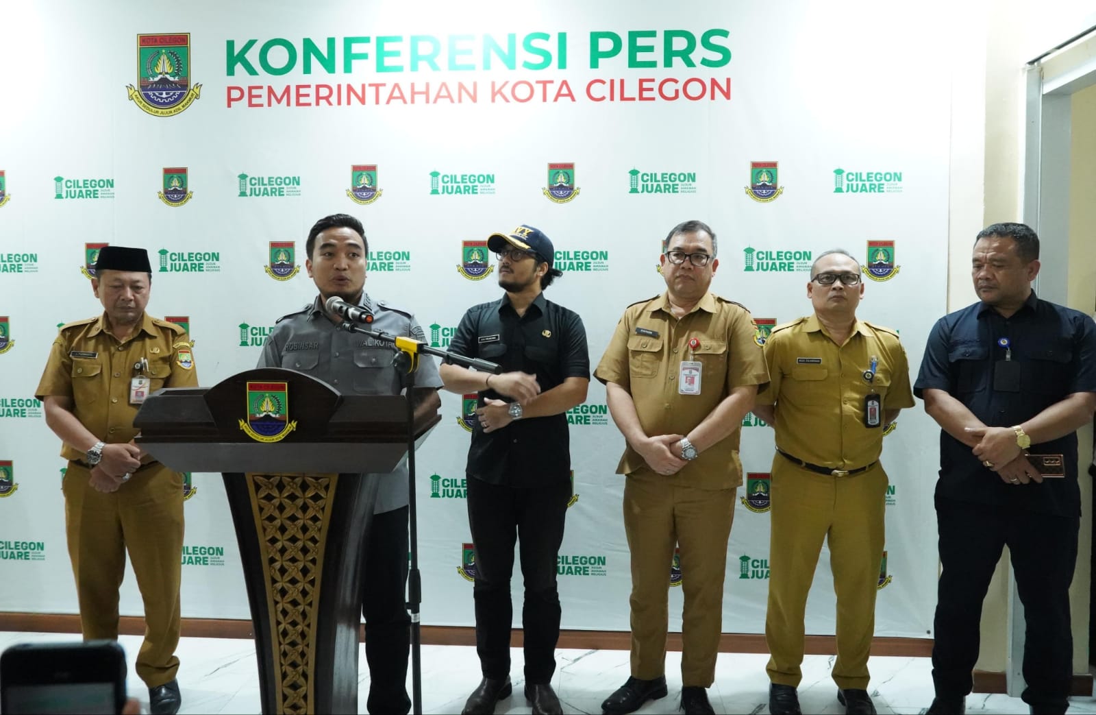 Dokumentasi: Wali Kota Cilegon Robinsar memberikan penjelasan dalam konferensi pers di Kantor Wali Kota Cilegon, Selasa (2/12/2025), terkait penataan jabatan Sekretaris Daerah yang mengikuti ketentuan perundang-undangan dan rekomendasi BKN.(Sumber: Diskominfo) Cilegon, (Delik Asia) | Pemerintah Kota Cilegon menyampaikan penjelasan resmi terkait penataan jabatan Sekretaris Daerah (Sekda) dalam konferensi pers di Kantor Wali Kota Cilegon, Selasa (2/12/2025). Wali Kota Cilegon, Robinsar, menegaskan bahwa langkah tersebut merupakan tindak lanjut proses administrasi kepegawaian yang mengacu pada ketentuan perundang-undangan serta rekomendasi Badan Kepegawaian Negara (BKN).