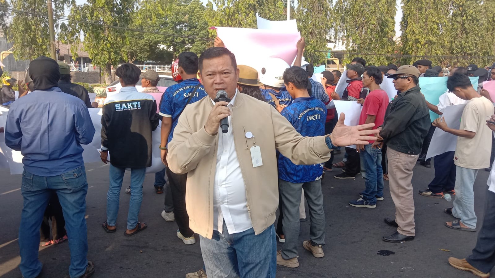 Husen Saidan sebagai Ketua LSM GAPPURA Banten, saat menyampaikan aspirasi masyarakat. DelikAsia.com, (Cilegon) | LSM Gappura bersama Gerakan Masyarakat Peduli Banten (GMPB) menggelar aksi damai di depan landmark Kota Cilegon pada kamis, 19 September 2024.