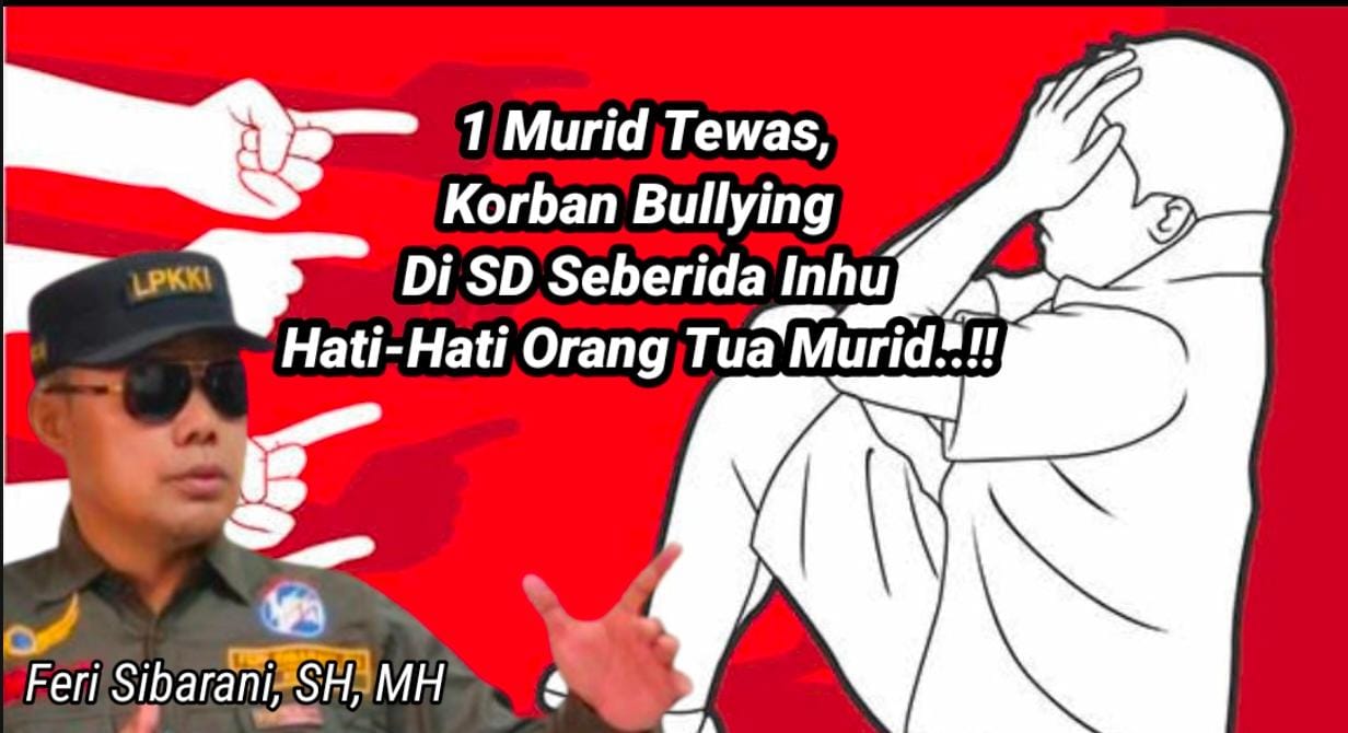 DelikAsia, (Jakarta) | Perbuatan sadisme yang terjadi pada anak SD (KB) usia 8 tahun kelas 2 SD di Sekolah Dasar Negeri Kecamatan Seberida Kabupaten Inhu Riau menjadi sejarah kelam dan sekaligus catatan buruk bagi kepemimpinan Gubernur Riau, Abdul Wahid, Bupati Inhu, Ade Agus Hartanto, Kepala Dinas Pendidikan Inhu, Kamaruzaman, Kepala 0Sekolah SD yang bersangkutan, Sutarno. Menurut LPKKI, para pemimpin tersebut harus bertanggung jawab atas kematian anak SD (KB) karena diduga kuat di bullying dan di aniaya oleh beberapa kakak kelasnya. 31/05/2025.
