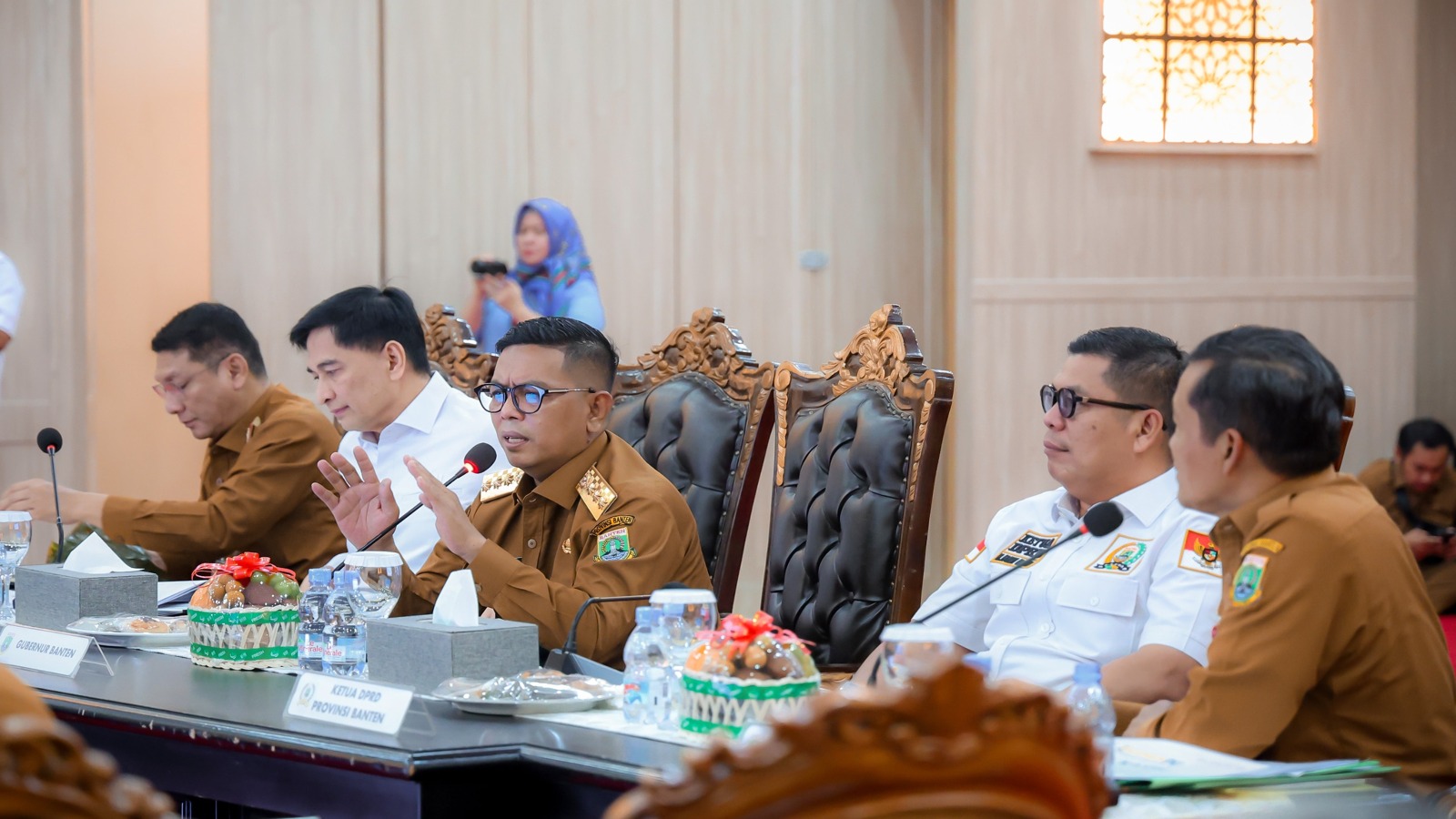 “Alhamdulillah, hari ini bersama seluruh bupati dan wali kota, kami membahas pembangunan infrastruktur secara menyeluruh,” kata Andra Soni.