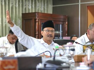 Gubernur Banten Andra Soni membuka rapat koordinasi pembangunan infrastruktur yang melibatkan pemerintah pusat, provinsi, serta kabupaten/kota di Serang, Banten, Senin (25/8/2025). Delik Asia, (Banten) | Gubernur Banten Andra Soni menginisiasi penguatan kolaborasi antara pemerintah pusat, provinsi, hingga kabupaten/kota lewat Rapat Koordinasi Pembangunan Infrastruktur Pekerjaan Umum di lingkungan UPT Kementerian PU Provinsi Banten. Rakor digelar di Pendopo Gubernur Banten, KP3B Curug, Kota Serang, Senin, 25 Agustus 2025.
