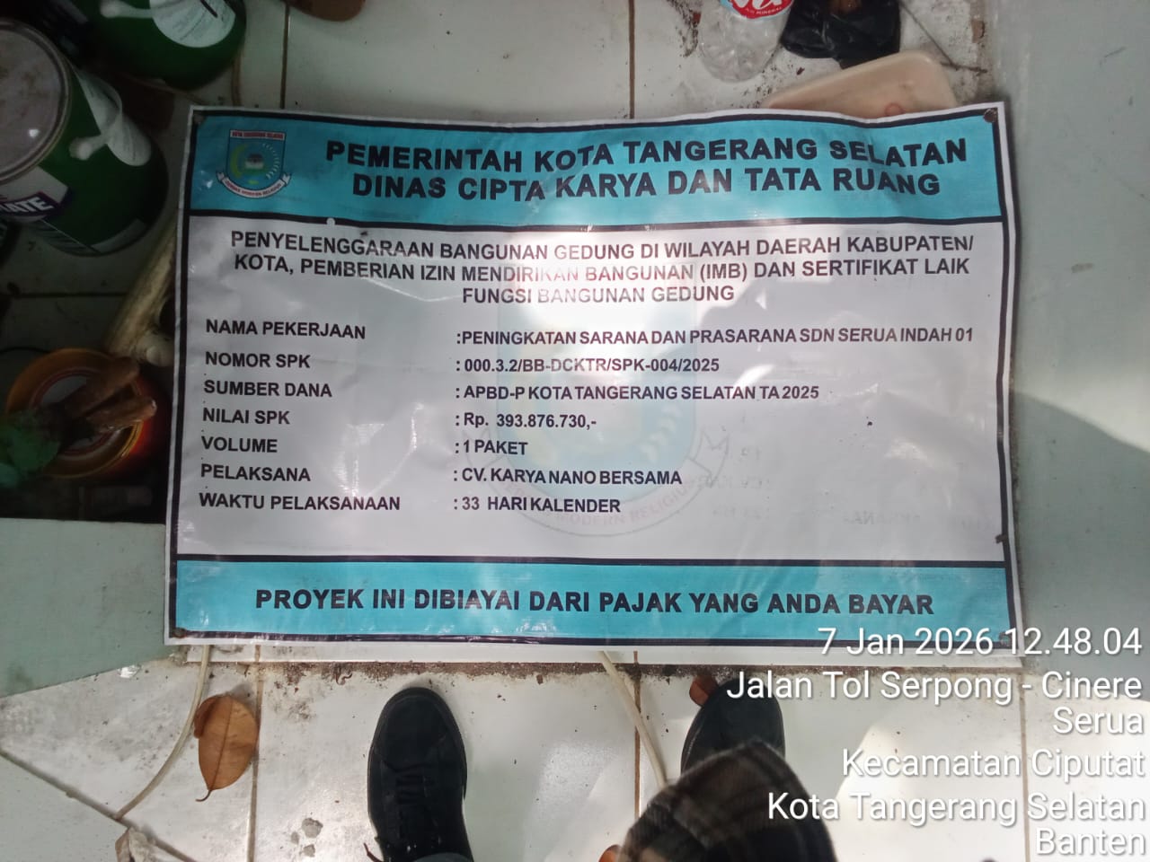 Proyek yang mencakup pembangunan pagar besi dan teralis jendela ini dibiayai oleh dana APBD-P Kota Tangerang Selatan dengan pagu anggaran mencapai Rp 393.876.730.