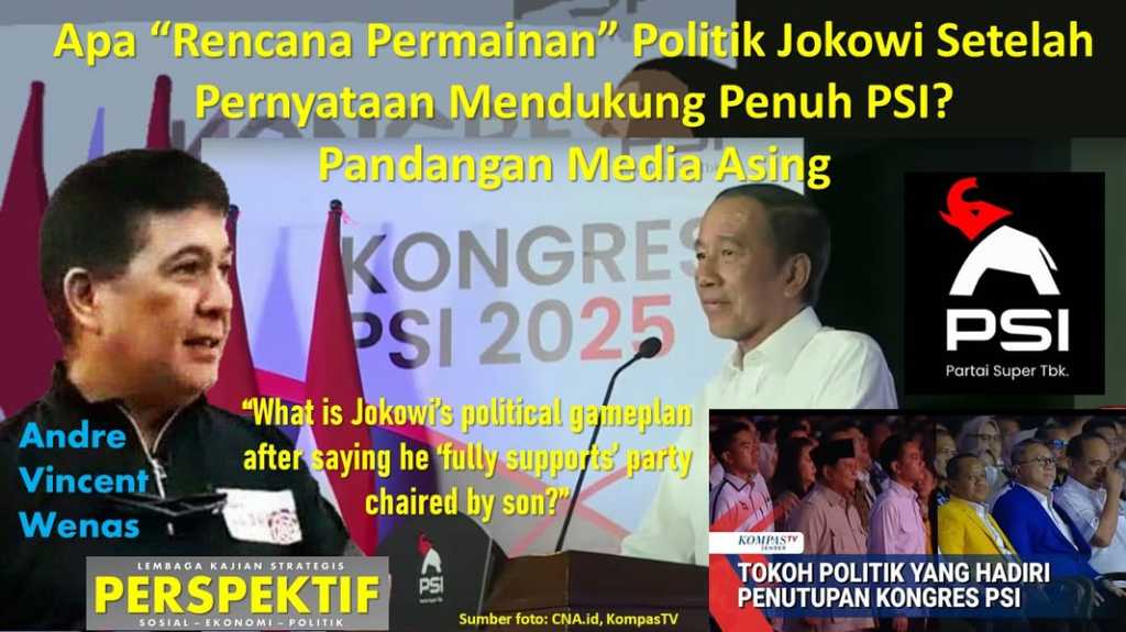 Ada yang menarik dari judul artikel “What is Jokowi’s political gameplan after saying he ‘fully supports’ party chaired by son?”, ditulis oleh Denny Armandhanu, terbit di website Channel News Asia (CNA) pada 22 July 2025. Apa “rencana permainan” politik Jokowi setelah menyatakan “mendukung penuh” partai yang diketuai putranya?