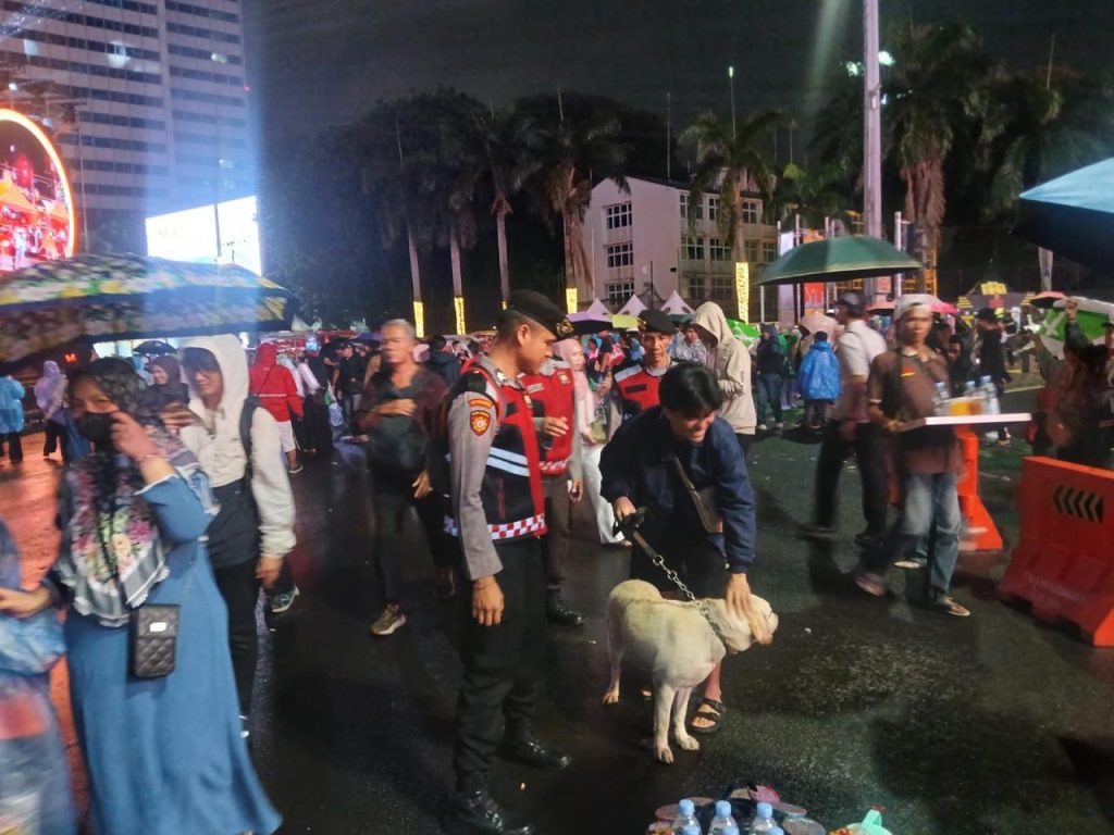 Jakarta, (Delik Asia) | Korps Sabhara mengerahkan satuan K-9 untuk memperkuat pengamanan malam pergantian Tahun Baru di kawasan Bundaran Hotel Indonesia, Rabu (31/12/2025) malam. Pengamanan dilakukan guna memastikan situasi tetap aman dan kondusif di tengah tingginya aktivitas masyarakat.