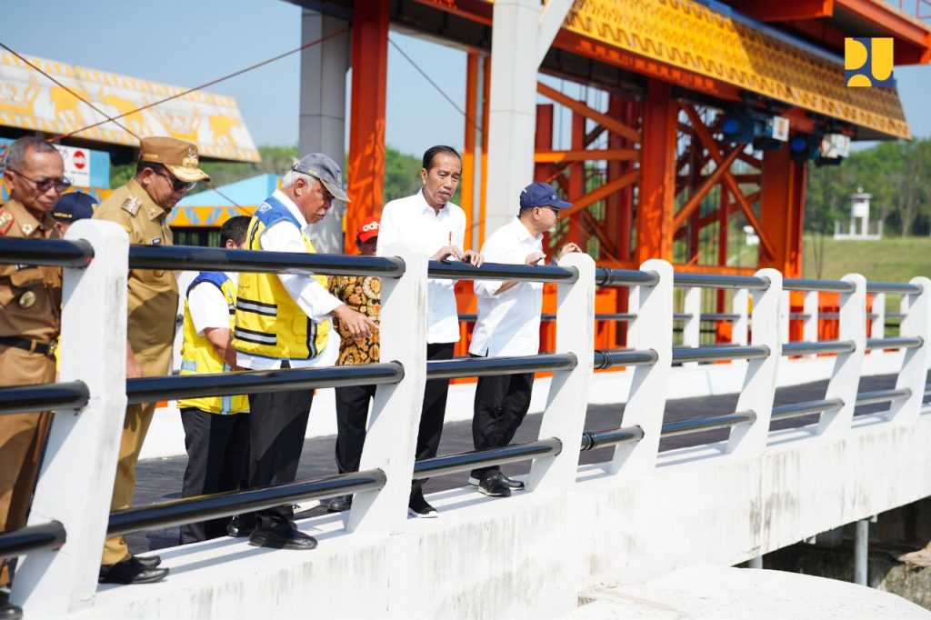 Presiden Republik Indonesia (RI) Joko Widodo didampingi Menteri Pekerjaan Umum dan Perumahan Rakyat (PUPR) Basuki Hadimuljono, dan Menteri Perdagangan Zulkifli Hasan, saat meresmikan Bendungan Margatiga yang berada di Kabupaten Lampung Timur, Provinsi Lampung, Senin (26/08/2024). DelikAsia.com, (Lampung) | Presiden Republik Indonesia (RI) Joko Widodo didampingi Menteri Pekerjaan Umum dan Perumahan Rakyat (PUPR) Basuki Hadimuljono, dan Menteri Perdagangan Zulkifli Hasan meresmikan Bendungan Margatiga yang berada di Kabupaten Lampung Timur, Provinsi Lampung, Senin (26/08/2024).