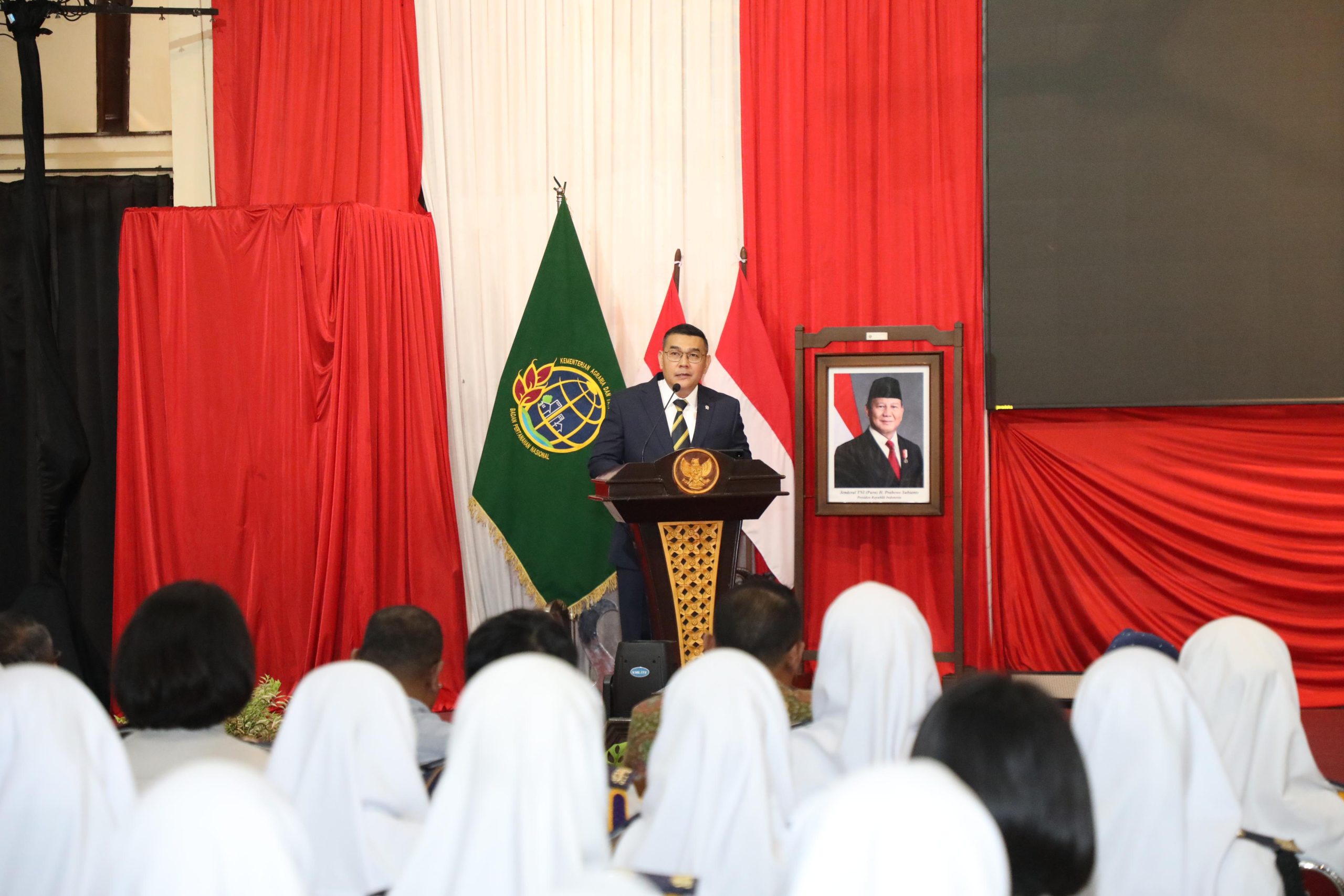 DelikAsia, (D.I. Yogyakarta) | Wakil Menteri Agraria dan Tata Ruang/Wakil Kepala Badan Pertanahan Nasional (Wamen ATR/Waka BPN), Ossy Dermawan, memberikan kuliah umum kepada Taruna/i Sekolah Tinggi Pertanahan Nasional (STPN), di Pendopo STPN, D.I. Yogyakarta, Jumat (09/05/2025). Kepada calon penerus bangsa ini, Wamen Ossy mengingatkan pentingnya pendidikan karakter dalam pembentukan jiwa kepemimpinan.