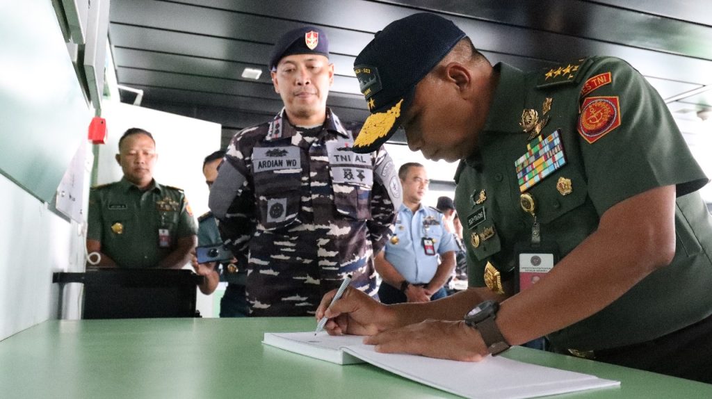 DelikAsia.com, (Jakarta) | Inspektur Jenderal Kementerian Pertahanan (Irjen Kemhan) Letjen TNI Budi Prijono, menggelar joy sailing bersama Anggota I BPK RI Nyoman Adhi Suryadnyana dan Irjen TNI AL Laksda TNI Rubiyanto menggunakan KRI Teluk Palu – 523 di Dermaga Kolinlamil Pos IX, Tanjung Priok, Jakarta Utara, Selasa (14/5).