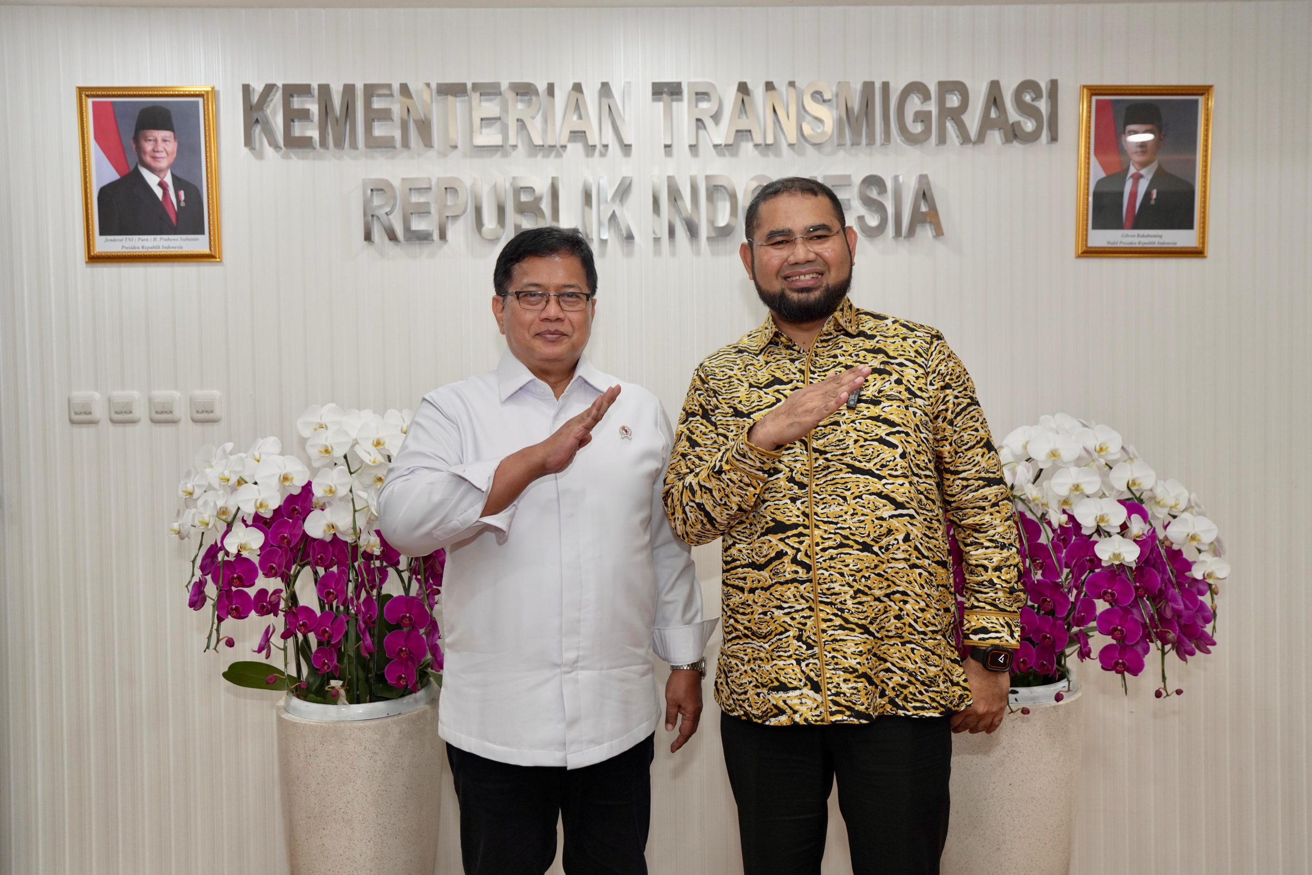 Delik Asia, (Jakarta) |  Kedatangan Bupati Halmahera Selatan, Provinsi Maluku Utara, Hasan Ali Bassam Kasuba di Ruang Kerja, Gedung C, Komplek Kantor Kementerian Transmigrasi, Kalibata, Jakarta, disambut dengan hangat oleh Wakil Menteri Transmigrasi Viva Yoga Mauladi, 14/7/2025. Pertemuan Hasan Ali Bassam Kasuba dan Viva Yoga hari itu merupakan pertemuan kesekian kalinya untuk membahas pembangunan kawasan transmigrasi di Halmahera Selatan.