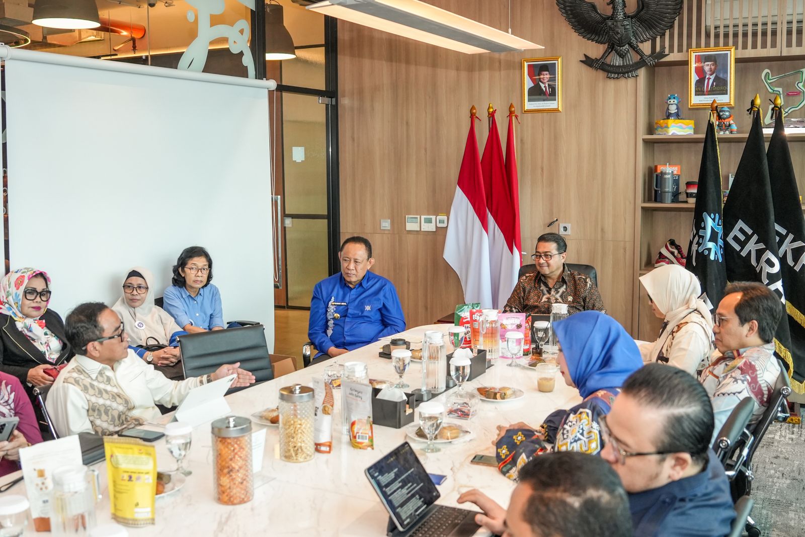 Delik Asia, (Jakarta) | Menteri Ekonomi Kreatif (Ekraf), Teuku Riefky Harsya, menekankan pentingnya kolaborasi hexahelix untuk mengoptimalkan potensi ekonomi kreatif Gorontalo, seperti sulaman Karawo, Kopiah Karanji, desa kreatif, dan event ekraf. Hal ini disampaikan saat menerima kunjungan Gubernur Gorontalo Gusnar Ismail di Autograph Tower Thamrin Nine, Jakarta, Rabu, 2 Juli 2025, dengan tujuan mendorong produk lokal masuk rantai pasok global.
