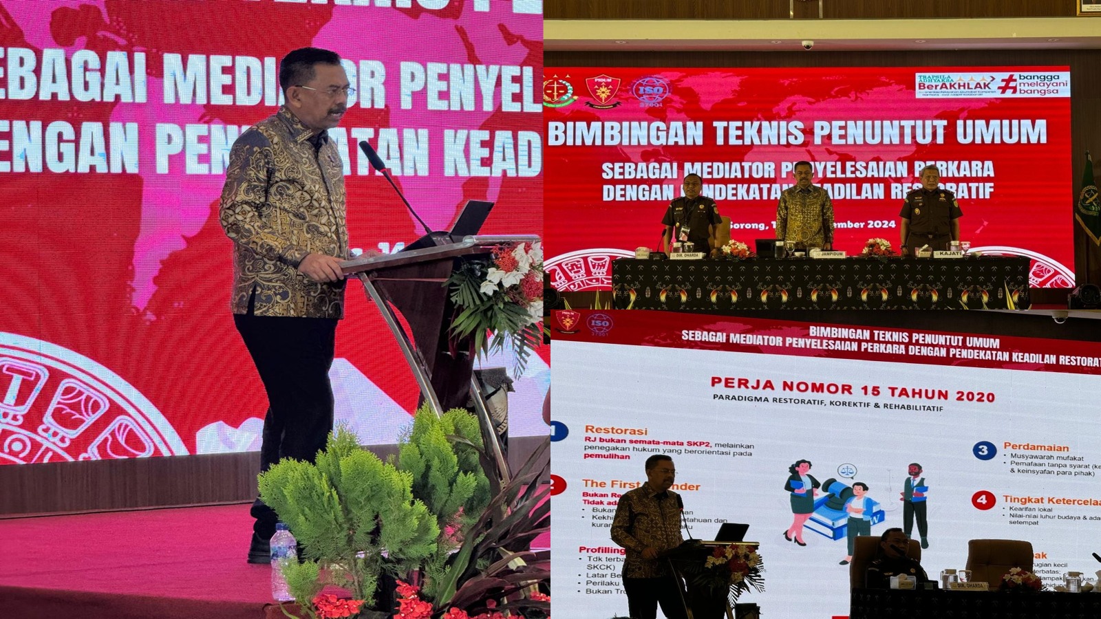 DelikAsia.com, (Jakarta) | Jaksa Agung Muda Tindak Pidana Umum (JAM-Pidum) Prof. Asep N. Mulyana membuka secara resmi kegiatan Bimbingan Teknis (Bimtek) di Papua Barat, dengan tema: “Penuntut Umum sebagai Mediator Penyelesaian Perkara dengan Pendekatan Keadilan Restoratif dan Perlindungan Ekosistem Karbon Biru untuk Mitigasi Perubahan Iklim” pada Jumat 15 November 2024 di Sorong, Papua Barat.