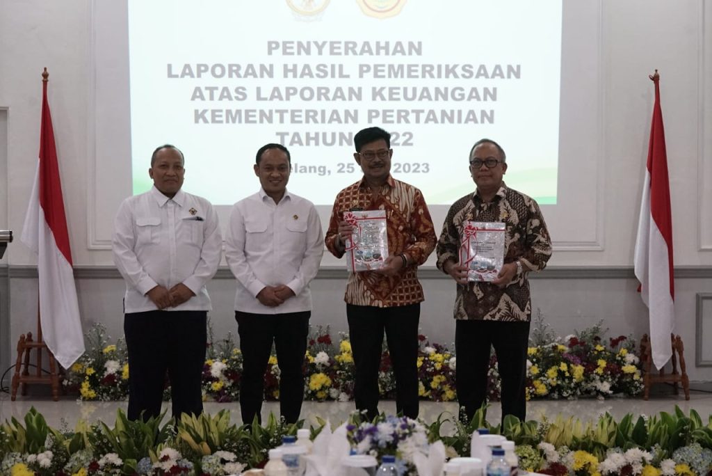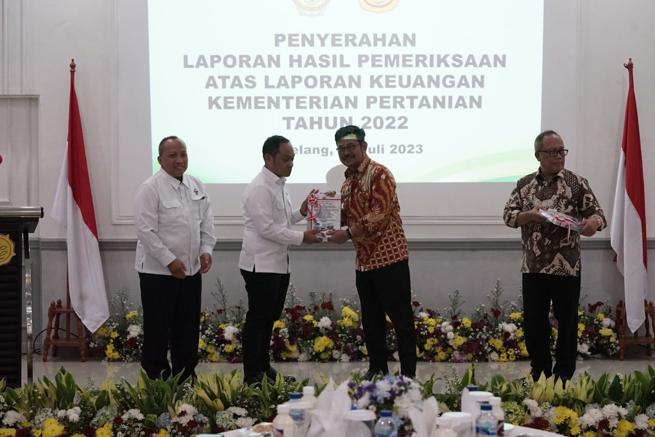 Bogor, (DelikAsia.com) | Badan Pemeriksa Keuangan BPK menyerahkan laporan hasil pemeriksaan keuangan Kementerian Pertanian tahun 2022. Dalam laporan ini, Anggota IV BPK, Haerul Saleh menyatakan pengelolaan keuangan di lingkup Kementan bersih dan layak mendapatkan predikat opini wajar tanpa pengecualian atau WTP.