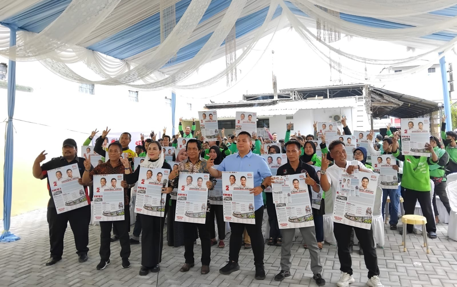 Acara berlangsung meriah dengan semangat, ditandai dengan yel-yel “GASKEUN!” sebagai bentuk dukungan para OJOL untuk calon Gubernur Banten, Andra Soni-Dimyati, dan calon Walikota Cilegon, Helldy Agustian-Alawi Mahmud.[Di2n Bk/**]