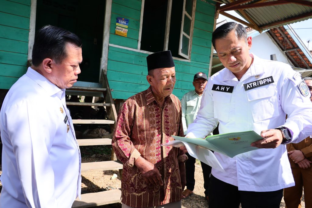 Seraya menyerahkan sertipikat secara door to door di Kelurahan Sijenjang, Menteri AHY juga berdialog langsung dengan warga penerima sertipikat terkait proses pembuatan sertipikat tanah.