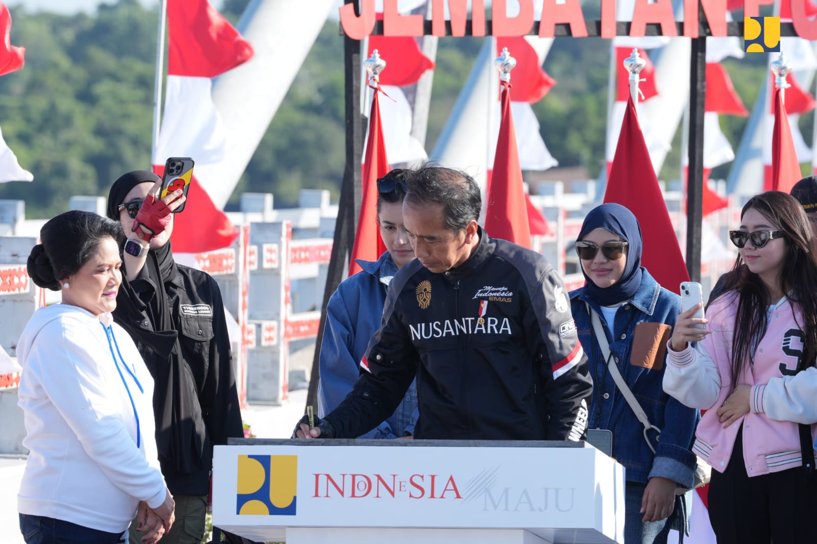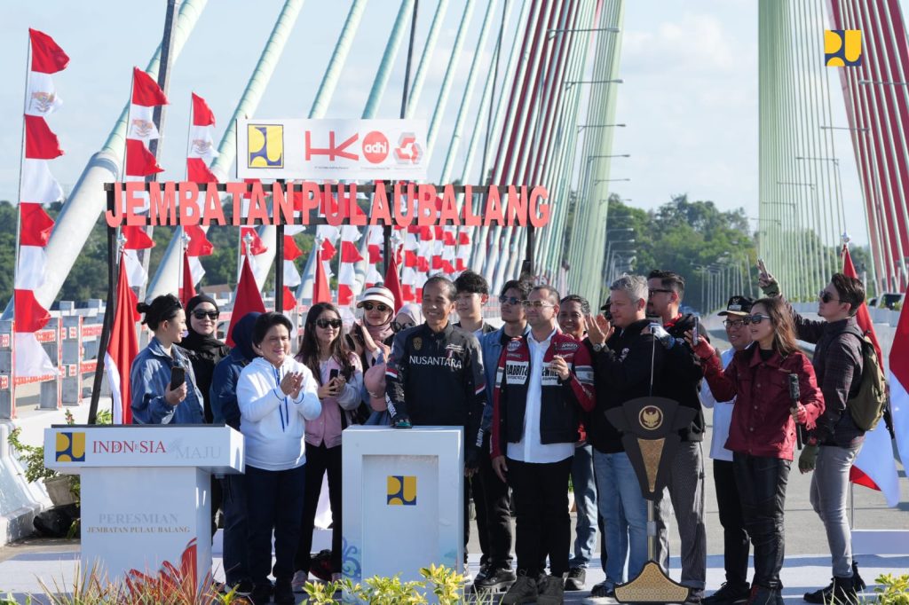 DelikAsia.com, (Pulau Balang) | Menteri Pekerjaan Umum dan Perumahan Rakyat (PUPR) Basuki Hadimuljono yang juga Plt Ketua Otorita Ibu Kota Nusantara (OIKN) bersama Plt Wakil Kepala OIKN Raja Juli Antoni mendampingi Presiden Joko Widodo (Jokowi) menjajal Jalan Bebas Hambatan Akses IKN dengan mengendarai kendaraan roda dua (sepeda motor) sekaligus meresmikan Jembatan Pulau Balang, Minggu (28/7/2024).