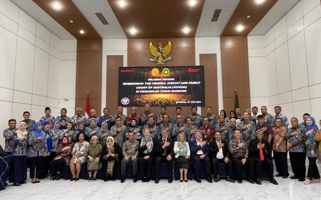 DelikAsia.com, (Jakarta) | Melanjutkan rangkaian kegiatan, Delegasi Federal Court of Australia (FCA) dan Federal Circuit and Family Court of Australia (FCFCoA) melakukan kunjungan resmi ke Pengadilan Negeri Bandung (27/06). Kunjungan ini merupakan bagian dari rangkaian kegiatan peringatan 20 tahun Penandatangan Nota Kesepahaman Kerja sama Yudisial antara Mahkamah Agung Republik Indonesia dengan dua Pengadilan di Australia tersebut.