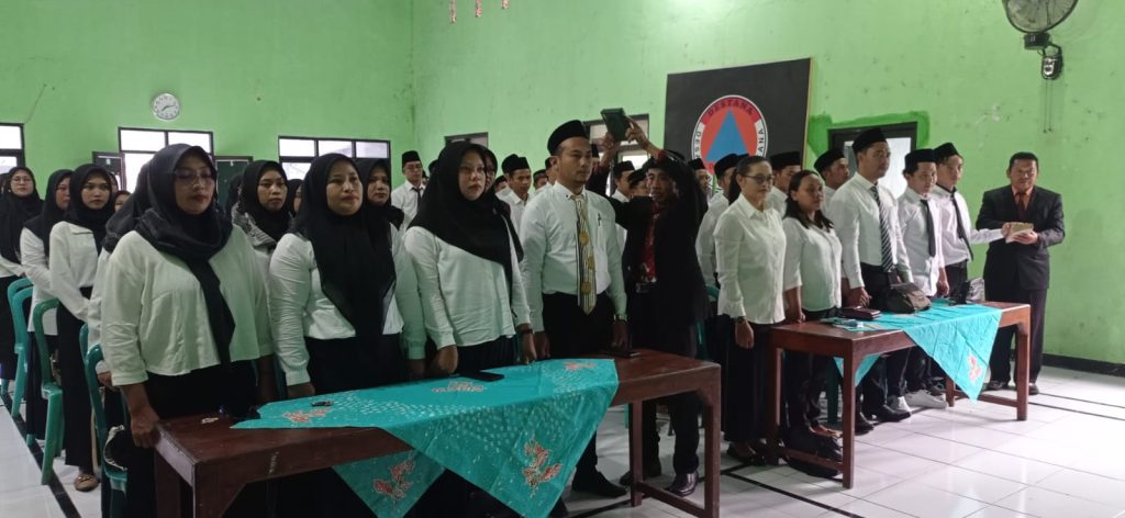 Dilanjutkan dengan pembacaan sumpah oleh 56 anggota KPPS,yang dibacakan oleh ketua PPS Desa Gesing menurut kepercayaan agama masing-masing.