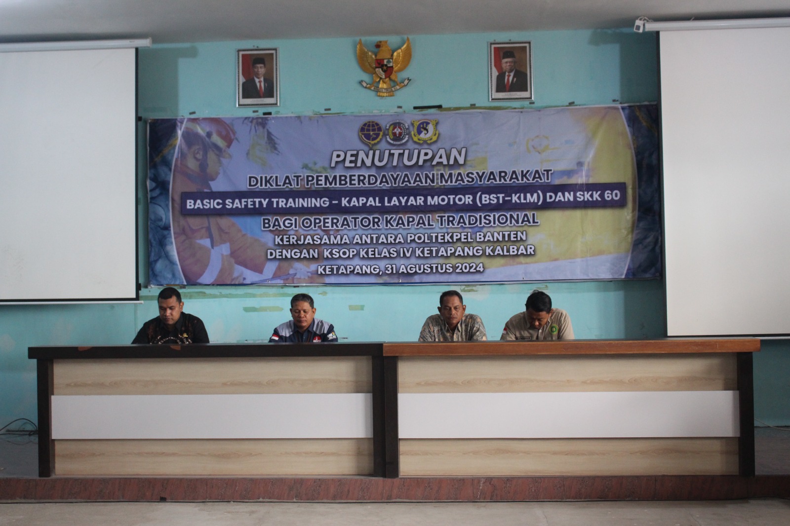 DelikAsia.com, (Ketapang) | Setelah 6 (enam) hari pelaksanaan Diklat Pemberdayaan Masyarakat BST-KLM dan SKK 60 Mil di Kabupaten Ketapang, Kalimantan Barat yang diselenggarakan oleh Politeknik Pelayaran Banten dan Kantor Kesyahbandaran dan Otoritas Pelabuhan (KSOP) Kelas IV Ketapang bekerja sama dengan SMKN 2 Ketapang yang diikuti sebanyak 144 peserta secara resmi ditutup pada Sabtu (31/8).