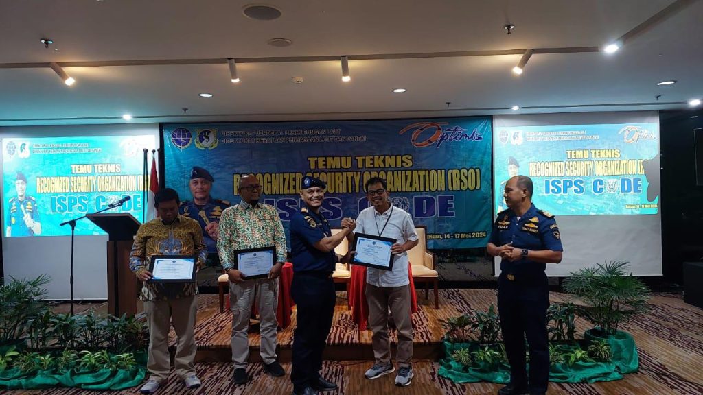 Pada kesempatan ini, Direktur KPLP, Jon Kenedi juga berkesempatan memberikan penghargaan kepada 3 (tiga) Perusuhaan RSO, yaitu PT. Yapanindo Konsultan, PT. Don & Profesional, serta PT. Kerabat Arto Segoro atas peran aktifnya dalam pelaporan aktivitas Recognized Security Organization (RSO). (SLO/MM/HB)