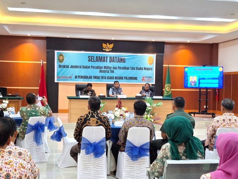 DelikAsia.com, (Jakarta) | Direktur Jenderal Badan Peradilan Militer dan Peradilan Tata Usaha Negara, Marsekal Muda TNI Dr. Yuwono Agung Nugroho, S.H., M.H., bersama dengan Direktur Pembinaan Tenaga Teknis dan Administrasi Tata Usaha Negara, Dr. H. Hari Sugiharto, S.H., M.H., melakukan kunjungan kerja ke wilayah Pengadilan Tinggi Tata Usaha Negara (PTUN) Palembang.