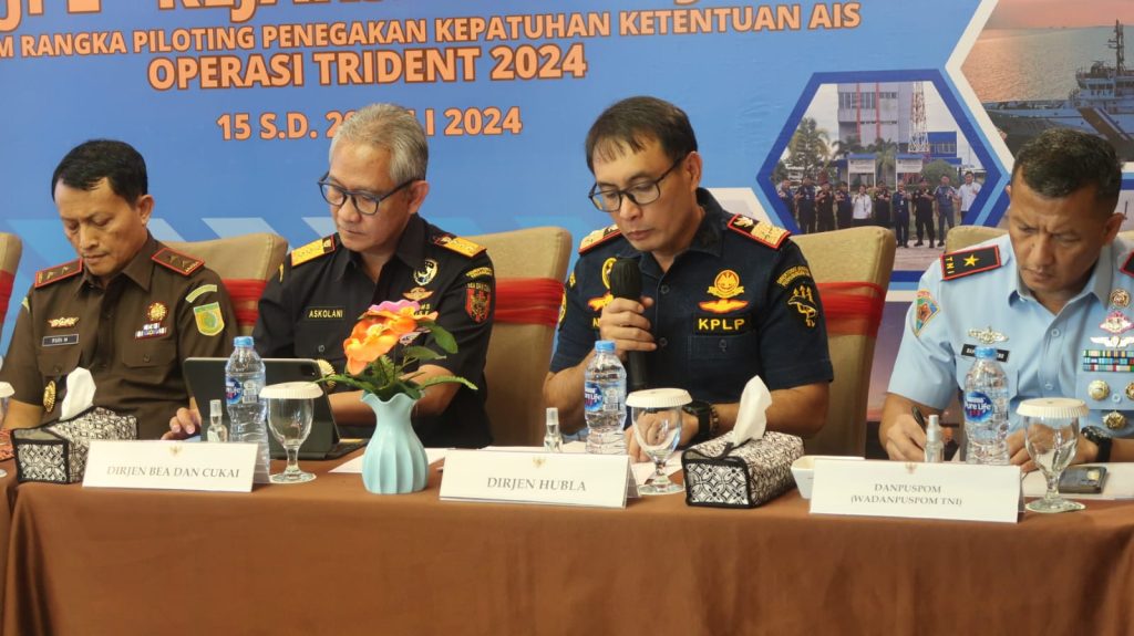 Dalam kesempatan tersebut, Direktur Jenderal Perhubungan Laut Capt. Antoni Arif Priadi menyampaikan sambutan sekaligus membuka acara Sinergi Operasional dalam Rangka Piloting Penegakan Ketentuan AIS Operasi Trident 2024. Capt. Antoni menjelaskan bahwa AIS merupakan sistem penting yang berfungsi untuk meningkatkan keselamatan pelayaran dan keamanan maritim.
