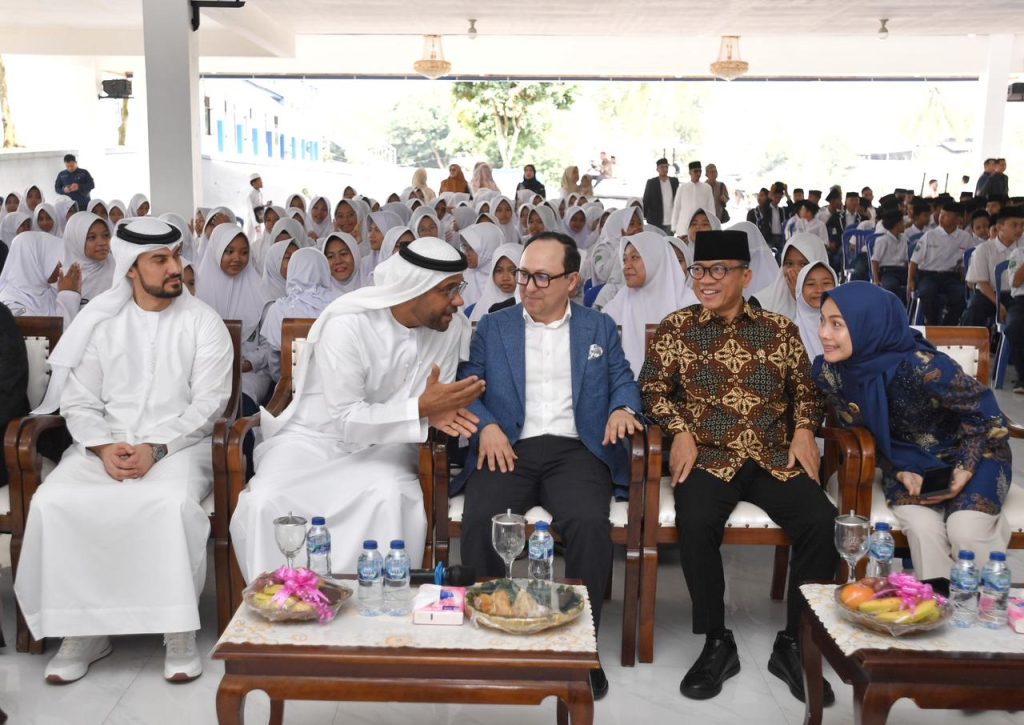 “Saya juga mohon kepada yang Mulia Dubes Uni Emirat Arab, Abdulla Salem Obaid AlDhaheri untuk memberikan motivasinya untuk santri atau siswa siswi kami,” kata mantan Anggota DPR RI itu.
