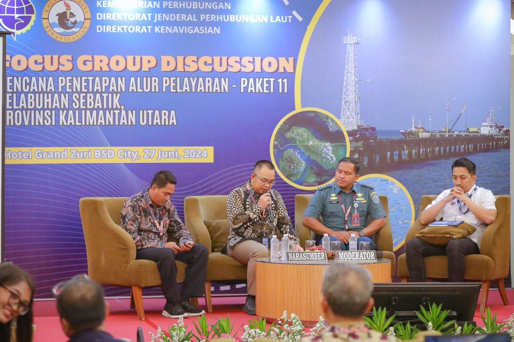 Untuk itu, dalam rangka memastikan alur pelayaran yang tepat, aman, dan efisien, Kementerian Perhubungan melalui Direktorat Jenderal Perhubungan Laut akan segera menetapkan Alur Pelayaran Masuk Pelabuhan Sebatik Provinsi Kalimantan Utara. Hal ini disampaikan Direktur Kenavigasian, Capt. Budi Mantoro saat membuka FGD Rencana Penetapan Alur-Pelayaran Masuk Pelabuhan Sebatik, di Hotel Grand Zuri BSD City, Kamis (27/6).