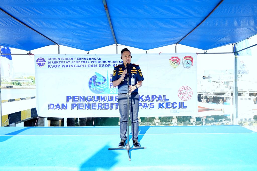 DelikAsia.com, (Waingapu) | Kementerian Perhubungan melalui Kantor Kesyahbandaran dan Otoriats Pelabuhan (KSOP) Kelas IV Waingau menggelar Gerai Pengukuran Kapal dan Penerbitan E-Pas Kecil secara gratis di wilayah Kabupaten Sumba Timur, Provinsi Nusa Tenggara Timur. Kegiatan ini merupakan bentuk sinergitas dan kolaborasi antara Pemerintah Pusat, Pemerintah Daerah Provinsi NTT dan Pemerinta Daerah Kabupaten Sumba Timur.(4/11).