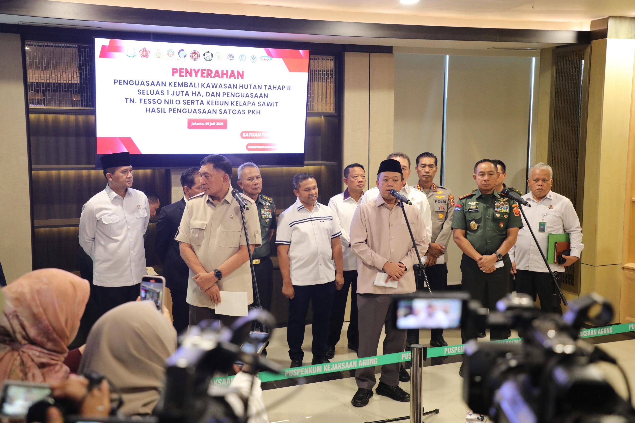 Dalam kegiatan ini, diselenggarakan Penandatanganan Berita Acara Penyerahan (BAP) Penguasaan Kembali TN Tesso Nilo yang dilakukan oleh Satgas PKH. Penandatanganan diwakili oleh Jaksa Agung, Burhanuddin dan Menteri Lingkungan Hidup/Kepala Badan Pengendalian Lingkungan Hidup, Hanif Faisol Nurofiq. Bertindak sebagai saksi, Menteri Nusron yang juga bertindak sebagai Anggota Pengarah Satgas PKH, serta Gubernur Riau, Abdul Wahid.