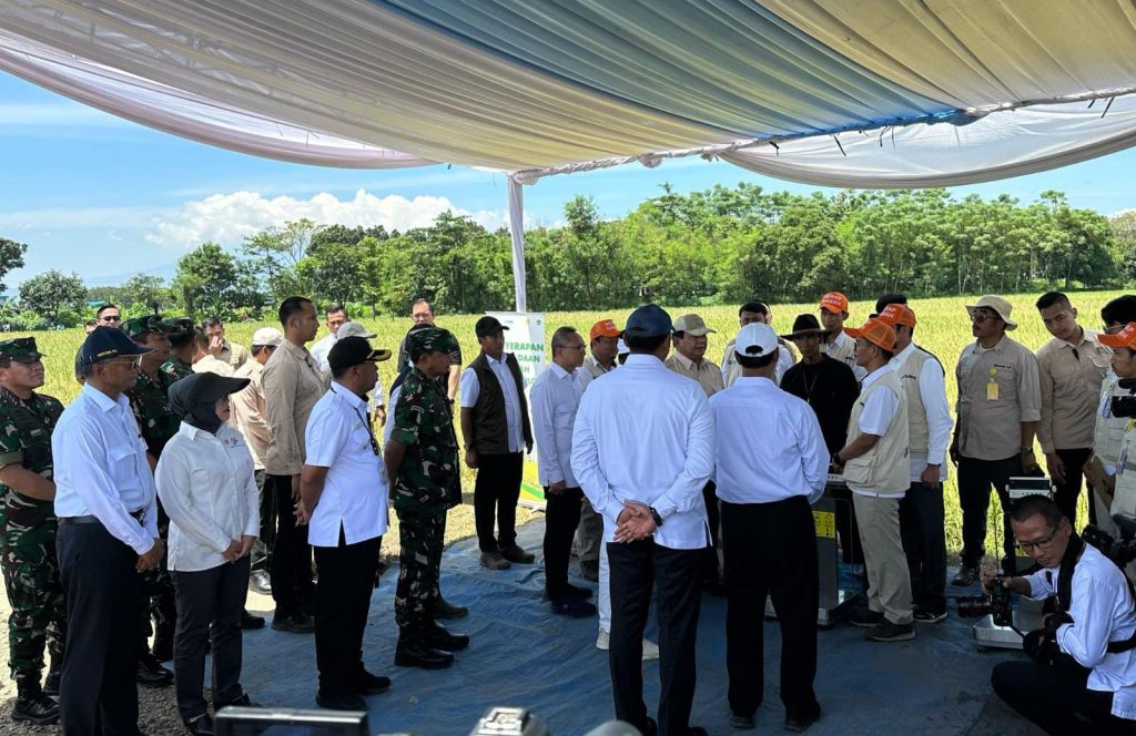 DelikAsia, (Majalengka] | Menteri Pekerjaan Umum Dody Hanggodo dan Menteri Pertanian Amran Sulaiman mendampingi Presiden Prabowo Subianto menghadiri panen raya bersama petani di Desa Randegan Wetan, Kabupaten Majalengka, Jawa Barat, Senin (7/4/2025). Kegiatan dilaksanakan secara hybrid yang turut dihadiri oleh Menteri Koordinator Bidang Pangan Zulkifli Hasan, Panglima TNI Jenderal TNI Agus Subiyanto, Wakil Menteri Pertanian Sudaryono, Komisi IV DPR RI, Gubernur Jawa Barat Dedi Mulyadi, Bupati Majalengka Eman Suherman serta para Gubernur dan Bupati di seluruh Indonesia.
