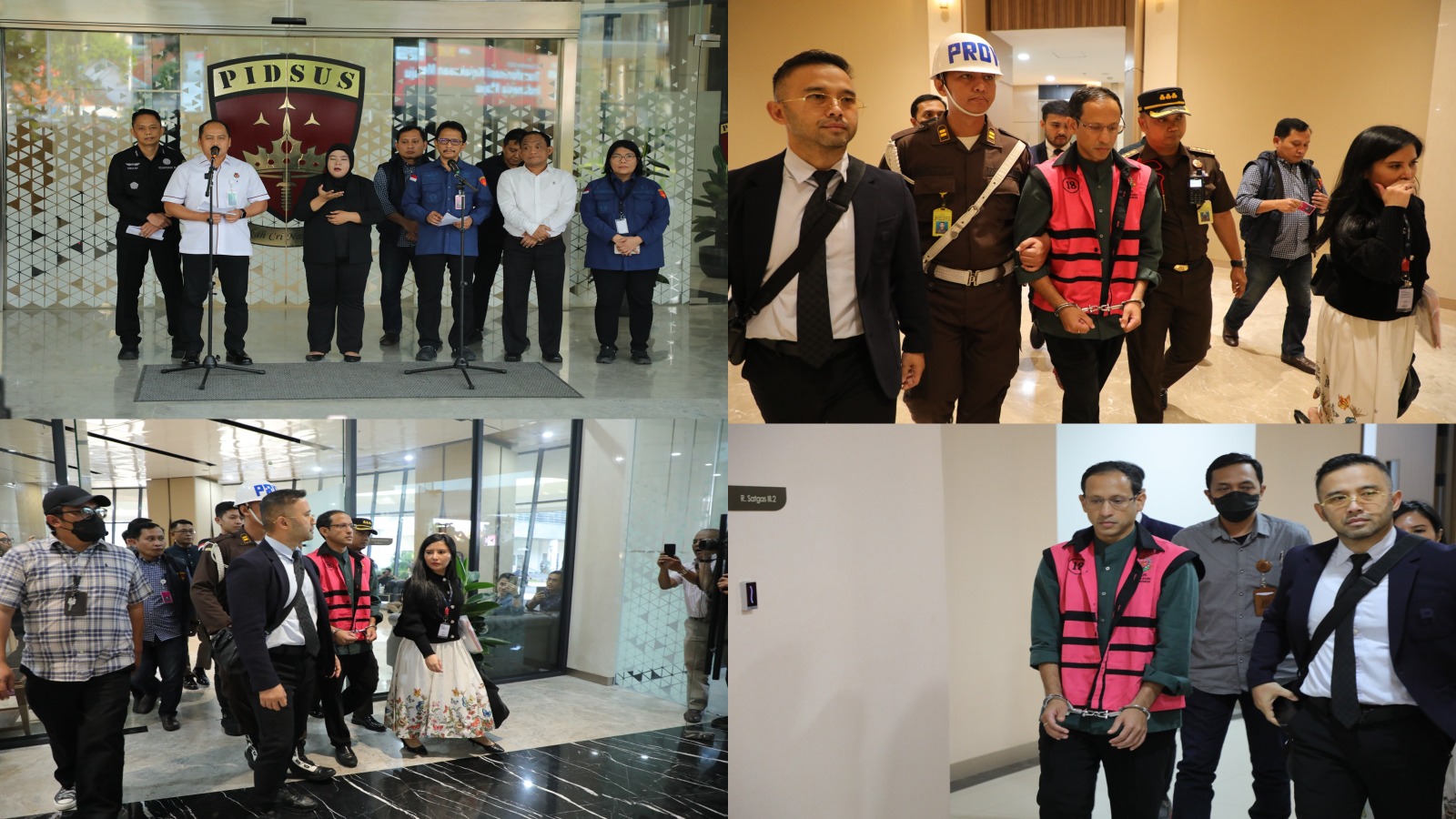 Suasana konferensi pers di Gedung Kejaksaan Agung, Jakarta, saat pengumuman penetapan tersangka NAM dalam perkara pengadaan TIK pendidikan.[Dok/Puspenkum Kejaksaan RI) Delik Asia, (Jakarta) | Kejaksaan Agung melalui Tim Penyidik pada Jaksa Agung Muda Tindak Pidana Khusus (JAM Pidsus) resmi menetapkan NAM, Menteri Pendidikan, Kebudayaan, Riset, dan Teknologi periode 2019–2024, sebagai tersangka kasus dugaan korupsi pengadaan alat teknologi informasi dan komunikasi (TIK) dalam program digitalisasi pendidikan Kementerian Pendidikan, Kebudayaan, Riset, dan Teknologi (Kemendikbudristek).
