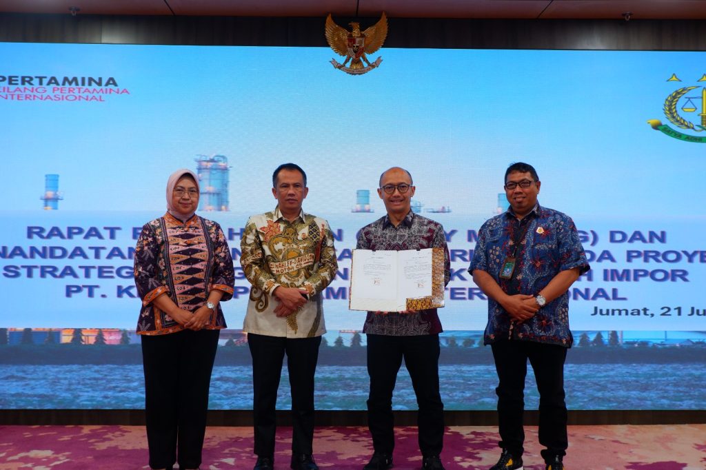 DelikAsia.com, (Jakarta) | Direktur Pengamanan Pembangunan Strategis (PPS/Direktur D) pada Jaksa Agung Muda Bidang Intelijen (JAM INTEL) Dr. Patris Yusrian Jaya, S.H.,M,H. menghadiri kegiatan Rapat Pendahuluan (Entry Meeting) dan Penandatanganan Pakta Integritas Kegiatan Proyek Strategis Pengadaan Minyak Mentah Import melalui Skema Cosc (Crude Oil Supply Colaboration) dan Pengadaan Minyak Mentah Impor melalui Skema Spot/Term pada PT Kilang Pertamina International. Acara berlangsung Ruang Rapat lantai 22 Gedung Utama Kejaksaan Agung, Jakarta, (21/06/2024)