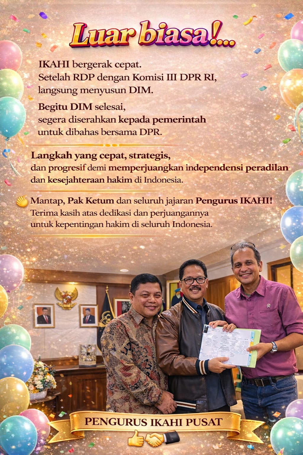 Langkah IKAHI yang bergerak cepat — dari RDPU langsung ke penyusunan DIM, lalu menyerahkannya kepada Menteri Hukum RI segera setelah RDPU tuntas — bukan sekadar kecepatan birokrasi. Ini adalah bukti bahwa di usianya yang ke-73, IKAHI paham betul bahwa momentum legislasi tidak boleh disia-siakan.