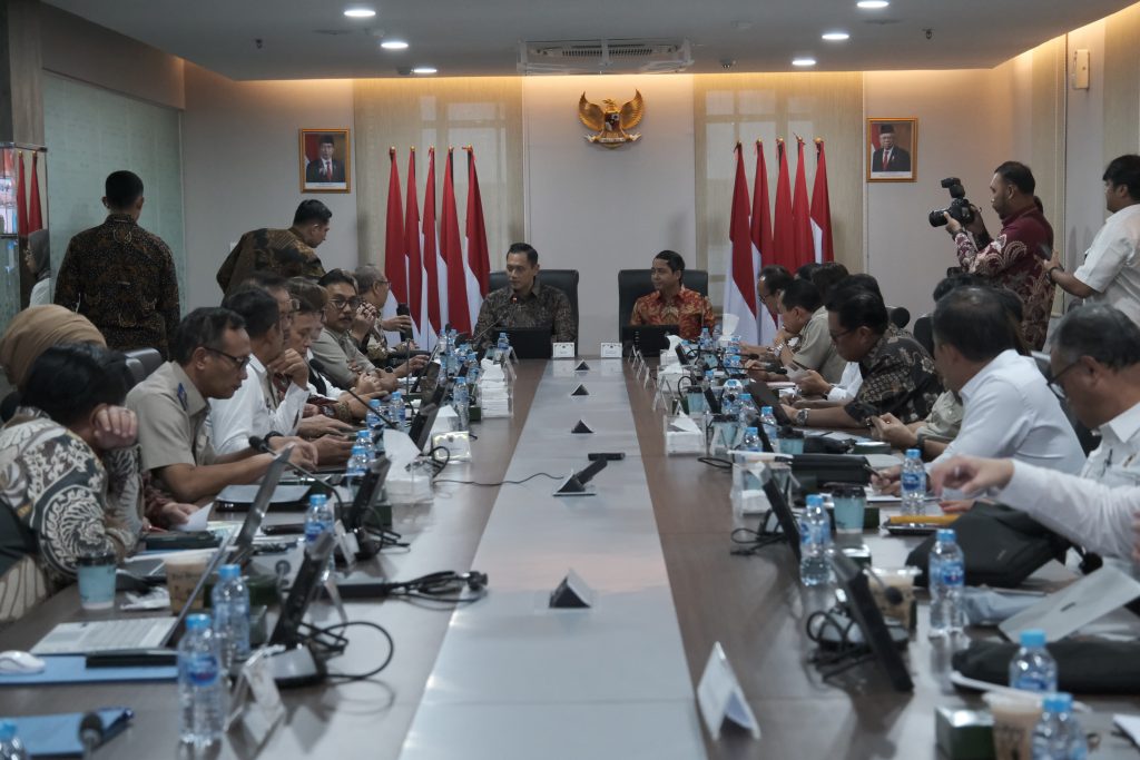 DelikAsia.com, (Jakarta) | Menteri Agraria dan Tata Ruang/Kepala Badan Pertanahan Nasional (ATR/BPN), Agus Harimurti Yudhoyono (AHY) memimpin pertemuan dengan Wakil Menteri (Wamen) ATR/Wakil Kepala (Waka) BPN, Raja Juli Antoni beserta seluruh jajaran Pejabat Pimpinan Tinggi Madya dan Pratama di lingkungan Kementerian ATR/BPN. Rapat pimpinan ini berlangsung di Kantor Kementerian ATR/BPN, Jakarta, Senin (08/07/2024).