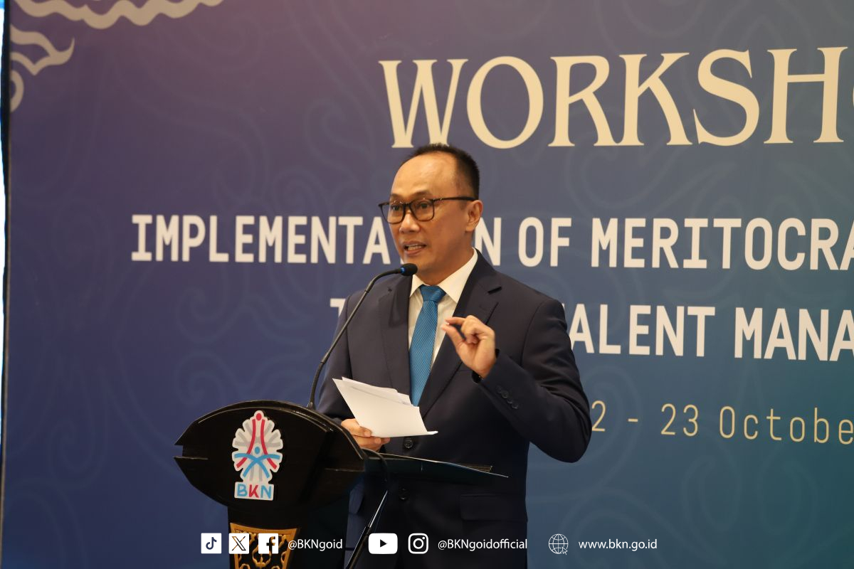 Caption: Kepala BKN Prof. Zudan Delik Asia, (Jakarta) | Dalam pertemuan bersama institusi pengelola manajemen ASN negara-negara ASEAN melalui ACCSM Indonesia Workshop on Implementation of Meritocratic Principles through Talent Management tahun 2025, Kepala Badan Kepegawaian Negara (BKN), Prof. Zudan bahwa pembahasan meritokrasi dan manajemen talenta lintas negara ASEAN ini menjadi momentum untuk memperkuat komitmen bersama diantara negara-negara ASEAN dalam membangun sistem birokrasi yang berbasis merit dan berorientasi pada pengelolaan talenta.
