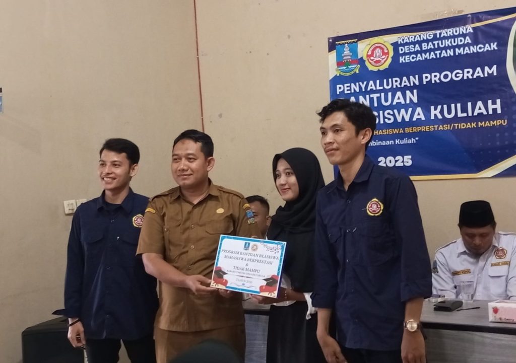 DelikAsia.com, (Serang) | Pengurus Karang Taruna Desa Batukuda, Kecamatan Mancak, Kabupaten Serang, memulai tahun baru dengan mencatat sejarah melalui peluncuran program beasiswa berupa uang pembinaan untuk mahasiswa berprestasi dan tidak mampu. Acara ini digelar di Aula Kantor Desa Batukuda pada Senin (20/1/2025).
