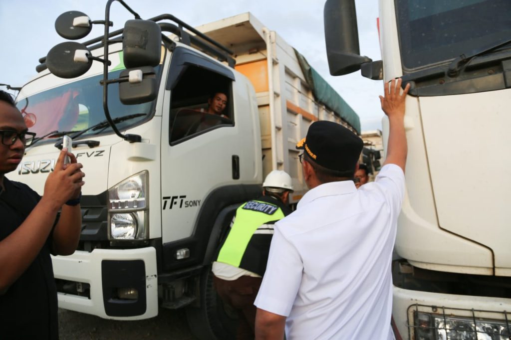Pada kesempatan itu, Andra Soni bersama rombongan juga memantau puluhan truk bermuatan hasil tambang yang masih terparkir di lahan PT SMI. Mereka terpantau menunggu jam operasional sesuai dengan Kepgub.