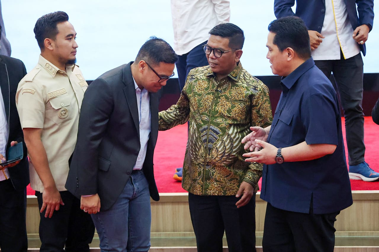 Delik Asia, (Serang) | Gubernur Banten Andra Soni menerima kunjungan kerja Ketua Umum PSSI yang juga Menteri BUMN Republik Indonesia Erick Thohir di Aula Pendopo Kantor Gubernur Banten, KP3B, Kota Serang, Jumat (22/8/2025). Pertemuan itu membahas pengembangan Kawasan Sport Center Provinsi Banten sekaligus arah pembangunan sepak bola nasional.