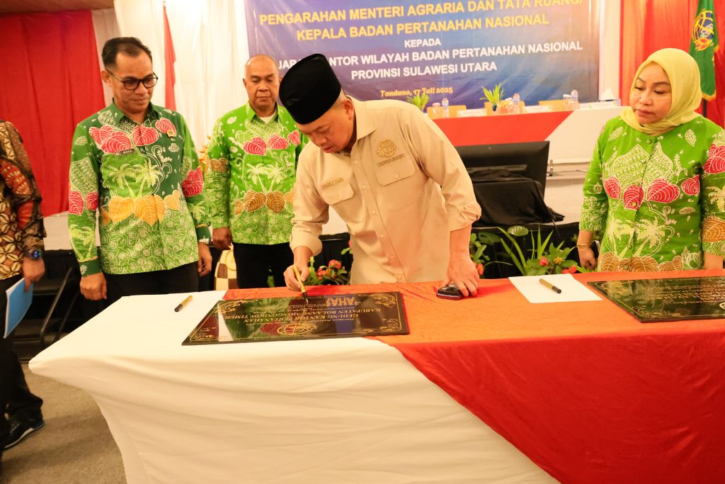 Sebagai informasi, sebelum memberikan pengarahan ke jajaran Kanwil BPN Provinsi Sulut, Menteri Nusron melakukan penandatanganan prasasti untuk peresmian sejumlah renovasi gedung kantor. Di antaranya adalah gedung kantor Kanwil BPN Provinsi Sulut, serta Kantor Pertanahan Kabupaten Bolaang Mongondow Utara (Bolmut) dan Bolaang Mongondow Timur (Boltim). Sebelum pengarahan, Menteri Nusron juga menyimak paparan soal capaian kinerja dari Kepala Kanwil BPN Provinsi Sulut, Erry Juliani Pasoreh.