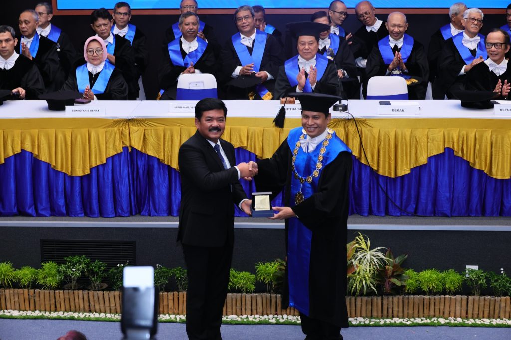 DelikAsia.com, (Sleman) | Menteri Agraria dan Tata Ruang/Kepala Badan Pertanahan Nasional (ATR/BPN), Hadi Tjahjanto menyampaikan pidato ilmiah dalam Rapat Terbuka Senat Fakultas Teknik Universtas Gadjah Mada (FT UGM) dalam rangka Dies Natalis FT UGM Ke-78. Kegiatan yang mengusung tema “Perlambatan Entropi Sebagai Paradigma Baru Ilmu Keteknikan Menuju Kehidupan Berkualitas dan Berkelanjutan” ini berlangsung di Auditorium Prof Roosseno FT UGM, Kabupaten Sleman, Provinsi D.I. Yogyakarta, Sabtu (17/02/2024).