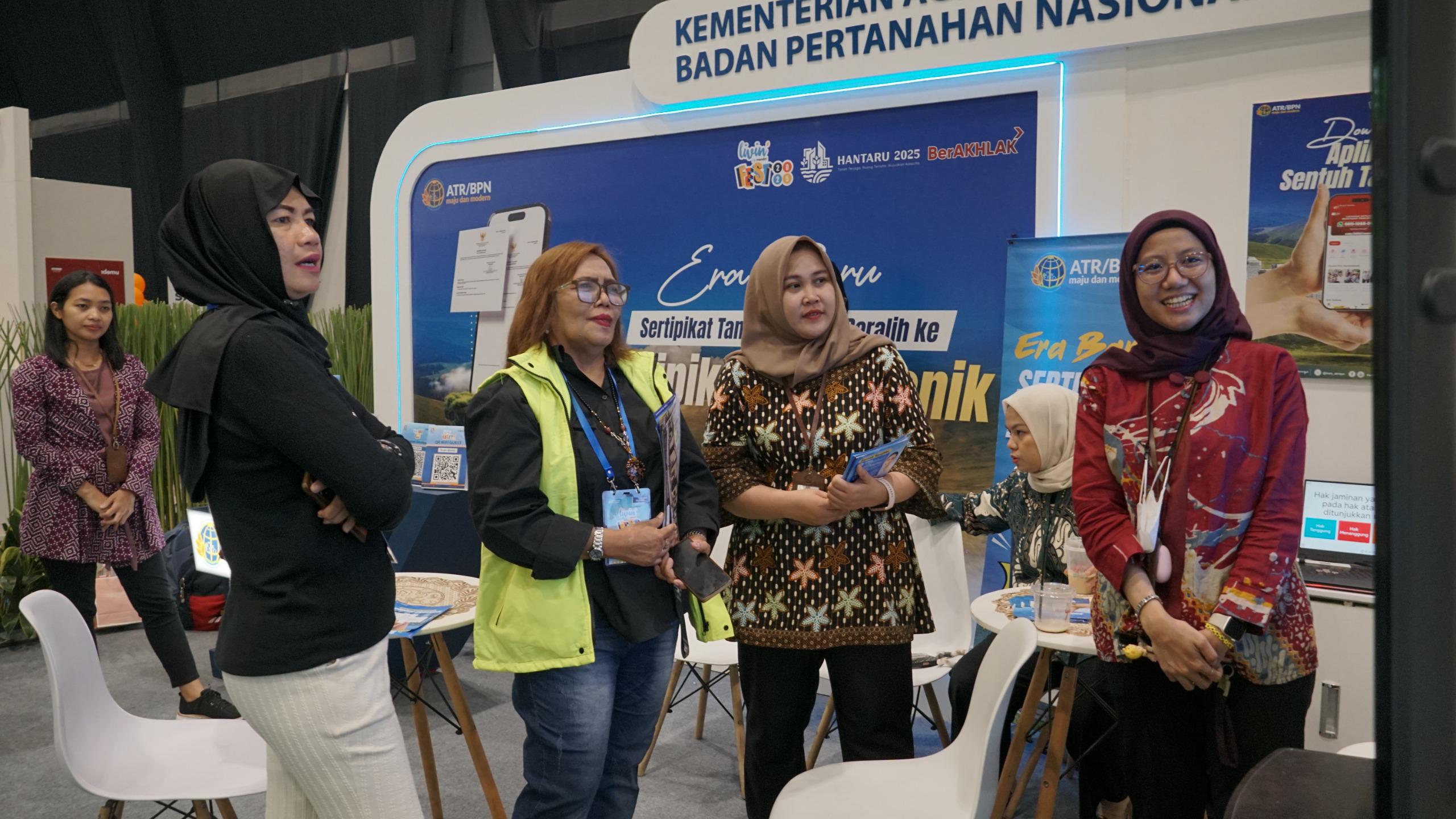 Ada pengunjung yang awalnya sekadar melintas, kemudian berhenti untuk melihat layar interaktif atau bertanya soal kendala pertanahannya. Ada yang datang dengan kebutuhan lebih spesifik, seperti syarat pengurusan alih media ke Sertipikat Elektronik atau konsultasi untuk keperluan transaksi properti. Bahkan, ada pegawai bank juga ikut berkonsultasi soal prosedur Hak Tanggungan secara Elektronik.
