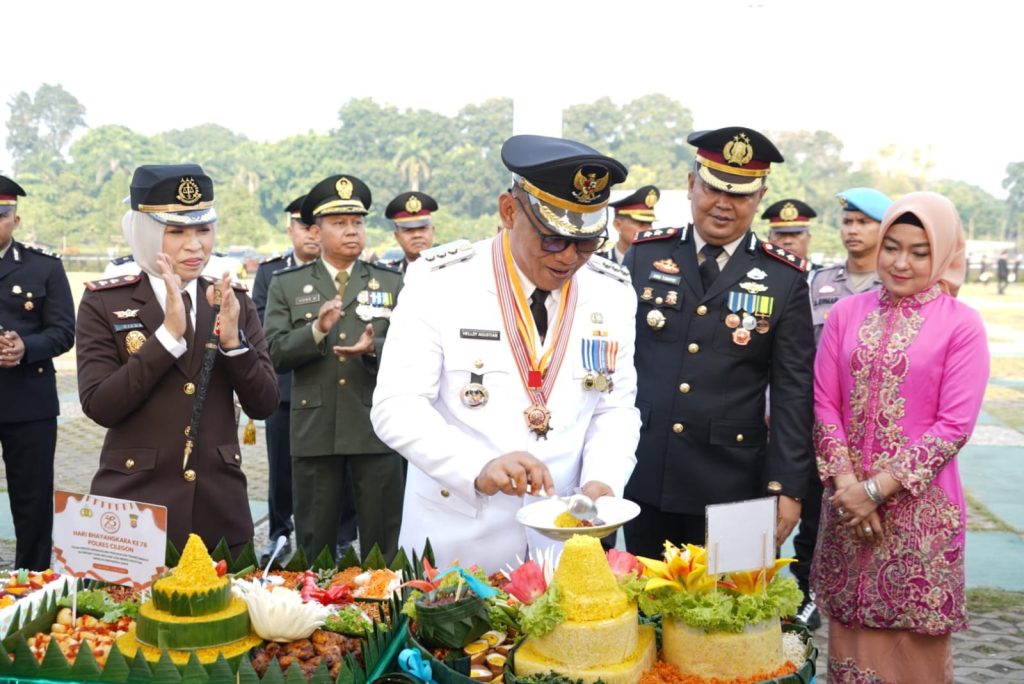 Sementara itu, Kapolres Cilegon AKBP Eko Tjahyo Untoro mengatakan, HUT Bhayangkara 2024 mengusung tema Polri Presisi Menuju Indonesia Emas. “Semoga di ulang tahun yang sekarang ini, Polri semakin baik semakin presisi. Di usia yang matang ini, kemudian menjadi acuan kami untuk dapat lebih mengayomi, melayani dan melindungi masyarakat Kota Cilegon dengan ikhlas dan maksimum,” katanya.