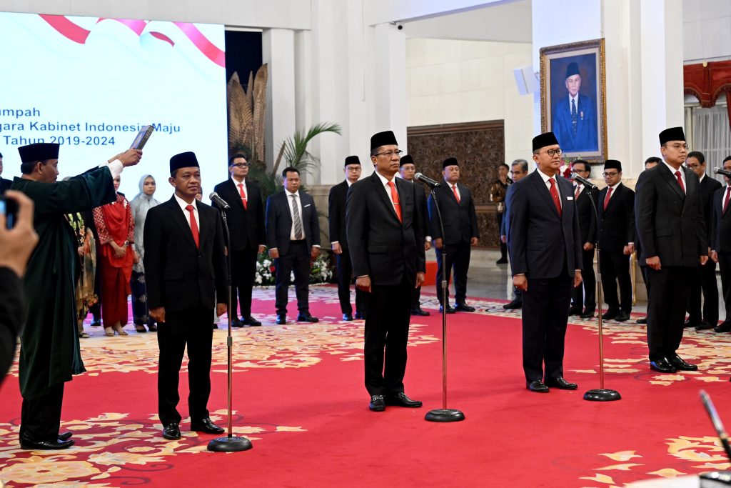 Beberapa pejabat negara yang dilantik kali ini antara lain Menteri Energi dan Sumber Daya Mineral (ESDM), Bahlil Lahadalia; Menteri Hukum dan HAM, Supratman Andi Agtas; Menteri Investasi/Kepala Badan Koordinasi Penanaman Modal, Rosan Perkasa Roeslani; dan Wakil Menteri Komunikasi dan Informatika, Angga Raka Prabowo.