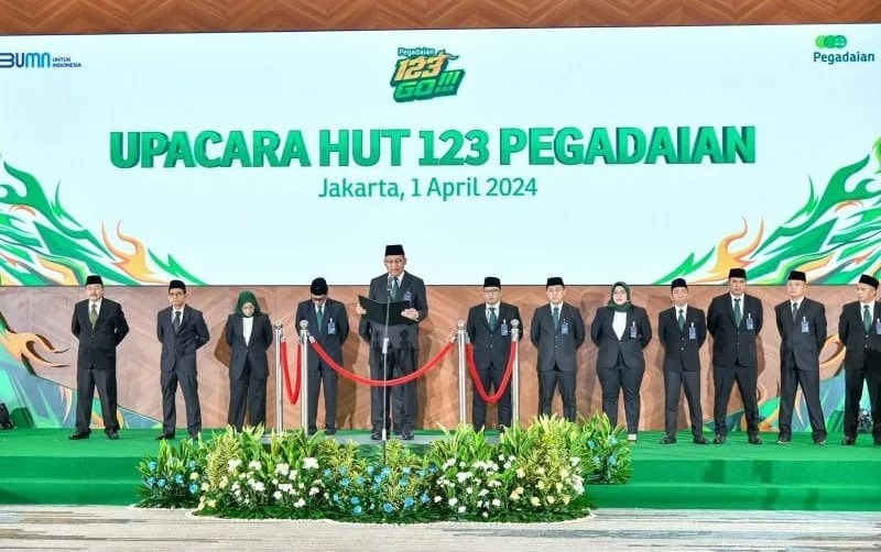 Dalam rangka memperingati HUT ke-123 yang jatuh pada hari Senin, 1 April 2024, PT Pegadaian menggelar upacara secara hibrid yang diadakan serentak di seluruh Indonesia.
