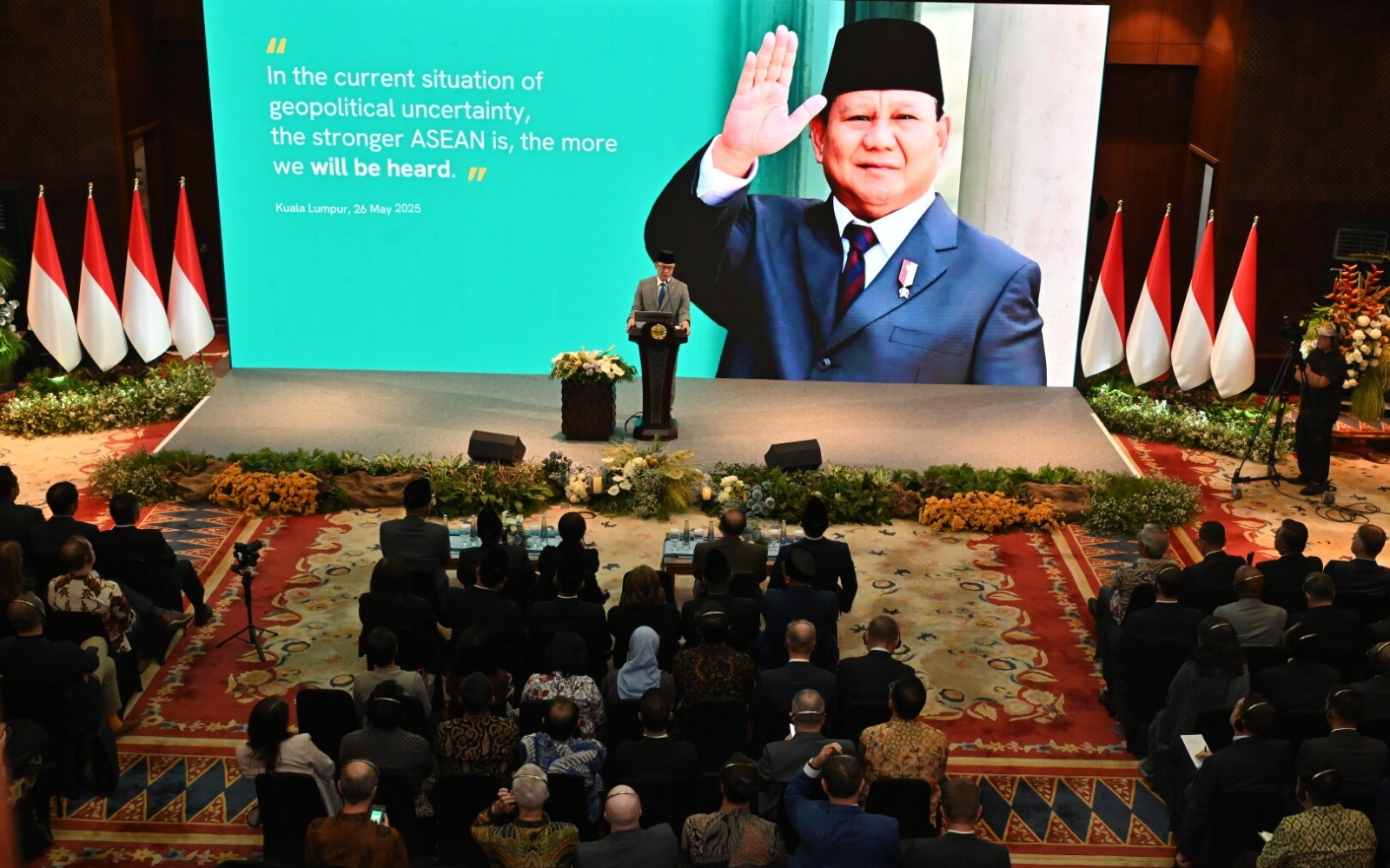 Menlu Sugiono menggarisbawahi bahwa ASEAN hanya akan kuat apabila persatuan dan sentralitas ASEAN terus dijaga dan diperjuangkan bersama. Persatuan menjadi kunci untuk mencegah fragmentasi, sementara sentralitas memastikan ASEAN tetap memimpin arsitektur kawasan dan tidak terseret dalam rivalitas kekuatan besar. Dalam kesempatan tersebut, Menlu juga mengutip penegasan Presiden Prabowo Subianto: “In the current situation of geopolitical uncertainty, the stronger ASEAN is, the more we will be heard.”