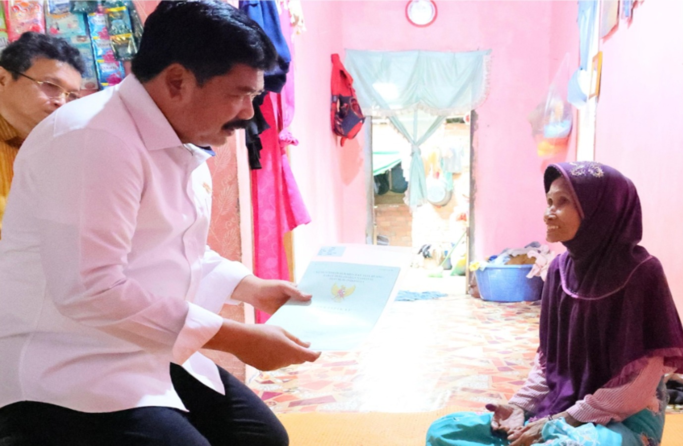 Hadi Tjahjanto mengunjungi satu persatu rumah masyarakat penerima sertipikat tanah tersebut. Ia juga berkesempatan duduk berkumpul bersama para penerima sertipikat untuk berdialog terkait proses pendaftaran tanahnya.
